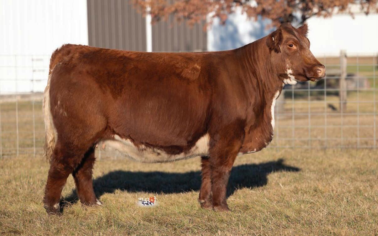 This female is a hoss! A female that can add power, bone, and substance to a program. Sired by the outcross Canadian sire Young Dale Honour. We have utilized him heavily, and every time the comment is made that we should have more. Good cattle! Her dam is a young female sired by KR Casino and out of the $240,000 ROSE MC Encore’s dam, Burns Elba 1454. No First Class in the pedigree allows for endless mating options.