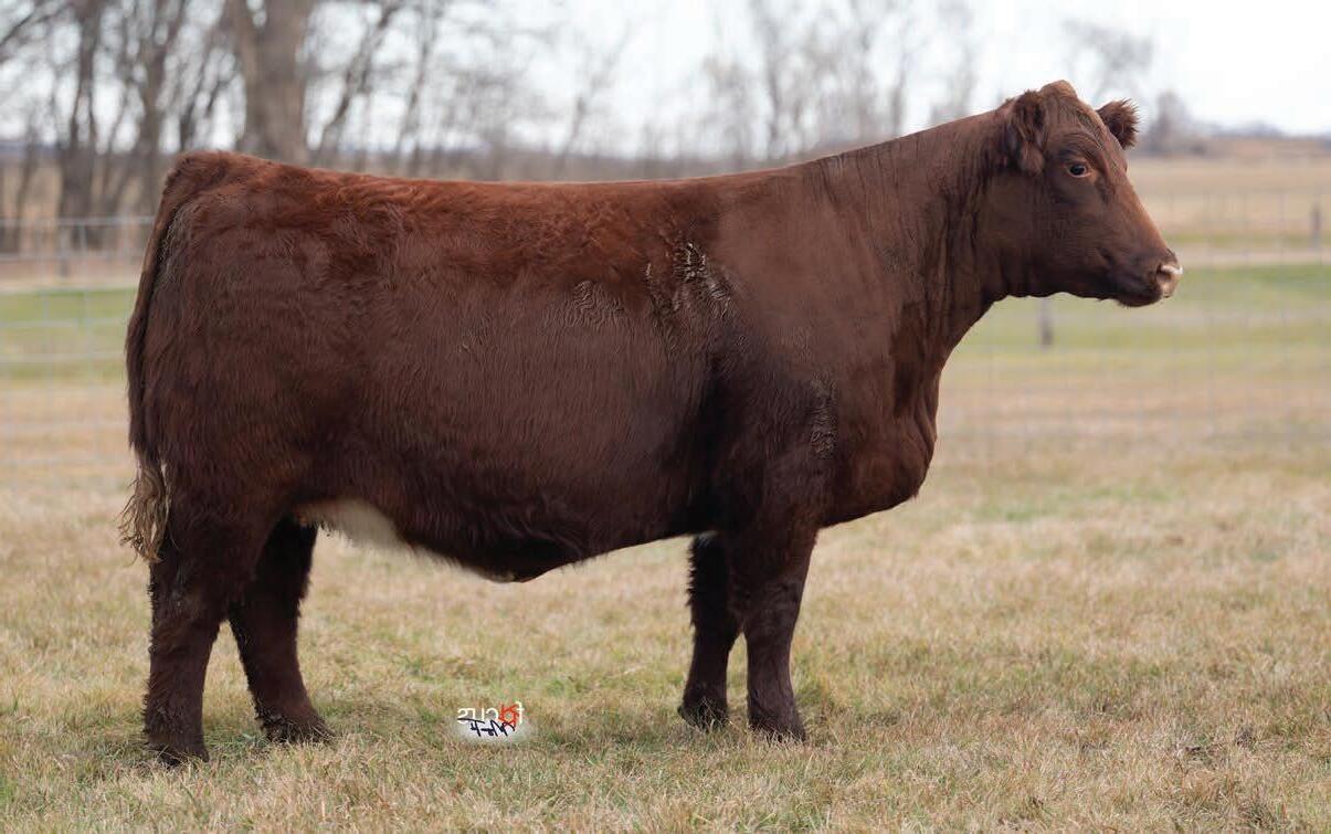 I really like this female. A big, stout bold female, that is constructed correctly and backed by elite dams and grand dams, all wrapped up in a cherry red package. The Chelsie cow family has been as successful as any in recent times. No cow family can consistently add the power and stoutness, without screwing anything up quite like the Chelsie’s. Her mother 501C was a many time champion for my brother Ben back in the day, highlighted by being named Reserve Supreme Female at NAILE. Being sired by SS Inferno offers a more outcrossed pedigree that can click with some of today’s hottest AI Sires. A maternal sister by Perfection sales for $17,000 in the 2024 Family Event.
