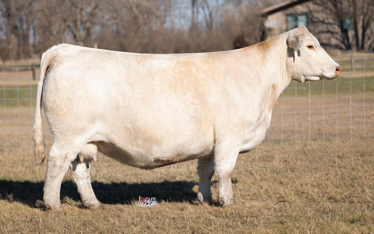The last direct 2120 daughter to ever be offered in Marion, SD. 2120 has created quite the legacy and her influence will live on through her many powerful daughters who are working for some of the top programs in the breed. Maternal sisters would include S/N Missing Mirage Legacy 372 ET, the popular many time champion of Caroline Huebner’s in 2024, SS Missing Mirage 0201, who is the dam of the $37,500 high selling female in the 2025 Family Event selected by the Bates Family, SS Evermore Mirage 137 ET, the past $105,000 Family Event high selling female who is now working as a donor of us and the Lehrman family, SS Missing Mirage 117, the $62,500 high selling ½ interest donor for Cates Farms, who in a short time has raised females commanding $115,000 and $60,000, and SS Hope’s Mirage ET who has raised females who sold for $35,000, $33,000 and $27,000. The proof is right in front of you and this white female is ready to work.