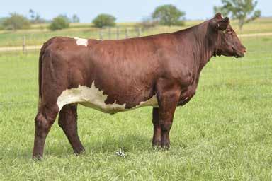 This Bankroll female will add to your bankroll and that’s a promise. A little chrome never hurt anyone and it’s evident that color is selling off the charts. This female is so shapely and smooth in her muscle pattern. One that is very square on the move and in all of her angles. I think she could work in a variety of scenarios, whether that’s Simmentals, Maines, or Club Calves. Her dam was the National Champion Maintainer at the 2019 National Western Stock Show.