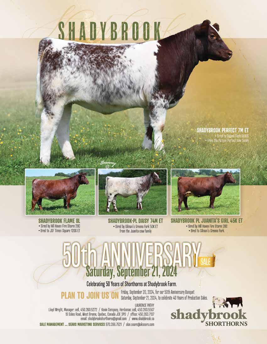 Sept. 21 - Shadybrook Farms “Decades of Excellence” Production Sale, West Brome, Quebec, Canada. Sept. 22 - Steck Cattle “Our Commitment Bid-Off Sale”, Woodstock, Minn.