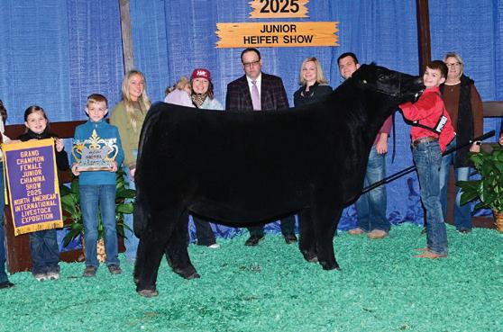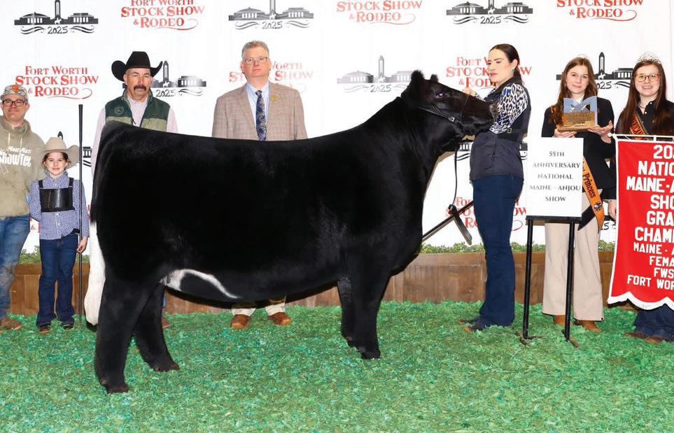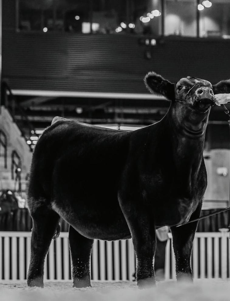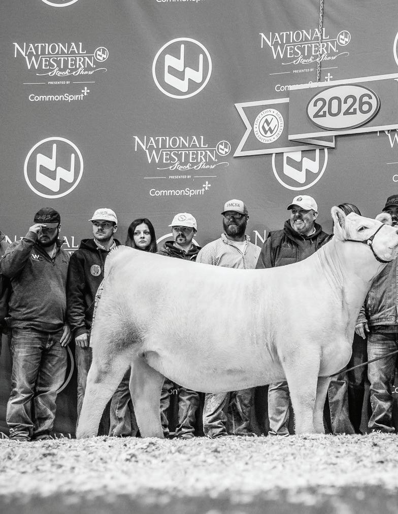 Every great story has a beginning, and this one starts in Louisville, Kentucky. Dean discovered and purchased GOF Miss Dolly 215H at the 2021 North American International Livestock Exposition—on the very night before she was selected Reserve Grand Champion. That purchase would prove to be nothing short of visionary. Prior to NAILE, Dolly had already built an impressive résumé. Earlier that year she was named Reserve Grand Champion at the Ohio Beef Expo and was selected Fourth Overall at the Maine-Chi National Junior Heifer Show, winning as both a Chianina and a Maintainer. Her momentum continued as she was crowned Grand Champion Maintainer at the 2022 Cattlemen’s Congress, culminating in a career-defining moment when she was selected Supreme Champion Female at the 2022 Oklahoma Youth Expo. Dolly’s transition from show ring standout to elite producer was seamless. Her first crop of embryo transplant calves headlined Lots 1A, 1B, 1C, and 1D at the Winegardner/ Klingman Harvest of Excellence Sale. The highlights were nothing short of spectacular. Lot 1A, an Onset daughter, commanded $140,000 when she sold to the Dunklau family, while Lot 1D, a Weis All Me daughter, brought $70,000 and went to Quentin Dykeman. Those females wasted no time adding banners to their résumés. BMW Dolly 206 ET made a high-profile debut at the 2025 Cattlemen’s Congress, where she was selected Reserve Champion Maintainer and Grand Champion Chianina. She followed that performance by storming the Junior Nationals, ultimately earning Supreme Champion Chianina and Reserve Champion Maintainer honors. Her success carried into the fall at NAILE, where she was named Reserve Champion in both the Junior Chianina and Maintainer shows and capped the week as Grand Champion Chianina Female in the Open Show. Her final run down the tanbark was fittingly historic. At the 2026 Cattlemen’s Congress, BMW Dolly 206 followed directly in her dam’s footsteps, winning Champion Maintainer in both the Junior and Open Shows and ultimately being selected Reserve Supreme Female across all breeds. BMW Dolly 502 ET, campaigned by Jackson Stevens, carved out an impressive path of her own. She began her show career as Reserve Grand Champion Maine-Anjou at the Hoosier Beef Congress. While she wasn’t shown as extensively as her maternal sister, her accomplishments are noteworthy—particularly her victory at the North American International Livestock Exposition, where she defeated here maternal sister BMW Dolly 206 ET to claim Champion Chianina honors, with her sister finishing Reserve.