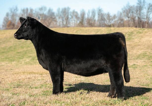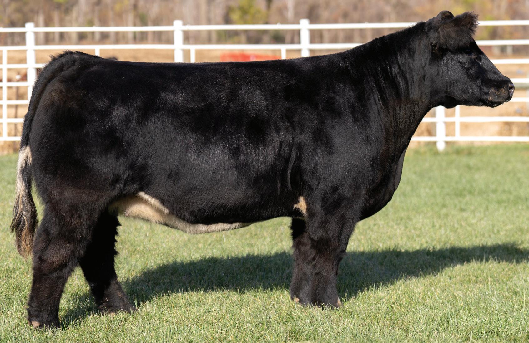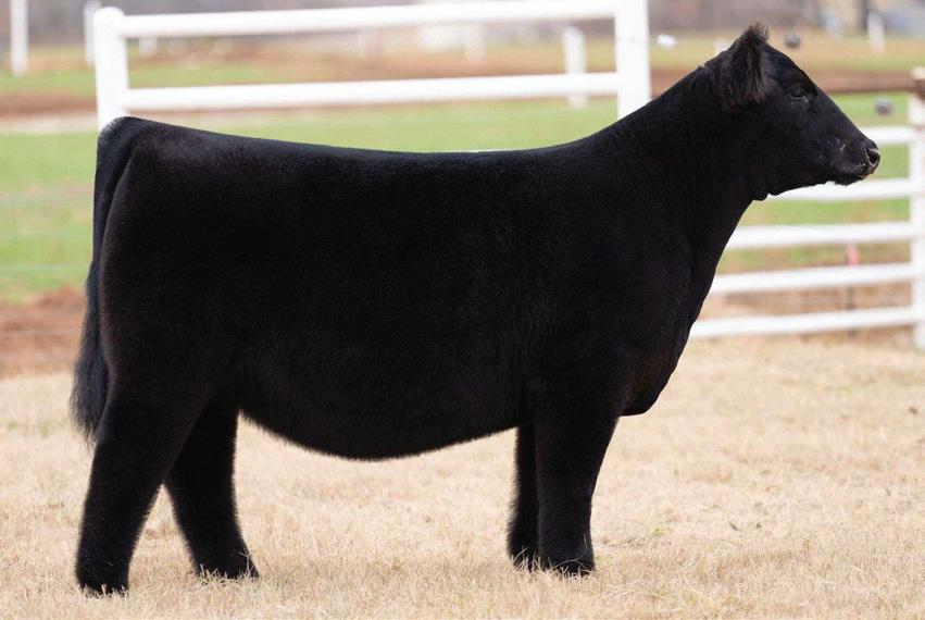 Brand new to the scene is a powerful, TH-clean Here I Am daughter, 5G, from Richland Farms. Make the trip to Trent, Texas, to visit Garth and his crew, view the cow herd, and you’ll quickly see why this phenotypic standout commands attention. Powerfully constructed, wide-pinned, and massive-bodied, she combines eye appeal with an abundance of hair and presence. She is the kind that leaves a lasting impression. This mating was no accident—pairing Here I Am, the king of the show steer ring, with an exceptionally powerful, big-bodied Irish Whiskey cow resulted in a female built for greatness. Her first calf crop was the highlight of Richland Farms’ fall offering, with both calves selling at elite, high-dollar levels—one to the Bonham & Newman partnership. Those standout calves were sired by In God We Trust, leaving no doubt that her upcoming black-hided calves by How Great Thou Art will be in strong demand.