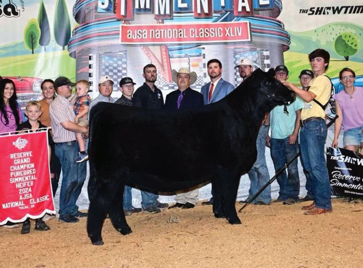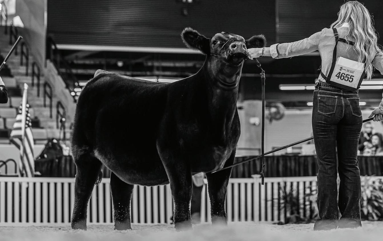 From there, 408M traveled to Kansas City for the American Royal, where she was named Grand Champion Junior Purebred Simmental Heifer before earning the coveted title of Supreme Champion Junior Breeding Heifer. Her performance placed her among the most celebrated junior breeding heifers ever to claim that honor. She carried that dominance forward to Louisville, where she was selected Grand Champion Junior Purebred Simmental Heifer at the 2025 North American International Livestock Exposition, followed by Reserve Supreme Champion Junior Breeding Heifer on the green chips of Freedom Hall. Not finished yet, 408M later added Reserve Grand Champion Open Purebred Simmental Heifer at NAILE, further solidifying her place among the breed’s elite. She wasn’t finished—she was simply saving her best for last. She still had one more statement to make. Just a few weeks ago at Cattlemen’s Congress, under the bright lights of the new OKC Fairgrounds OP&G Complex, she electrified the crowd by being crowned Supreme Champion Female—an exclamation point that elevated her from a breed standout to industry icon.