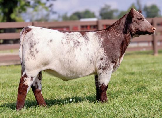 She delivers—every single time. Cupcake has firmly established herself as one of the most consistent and productive donors in the business. Her 2022 steer, shown by Hadley Hendrickson, was among the most talked-about calves of the 2023 show season. His résumé included Grand Champion Steer honors at the Hoosier Beef Congress, Purdue AGR, Missouri AGR, and Ohio AGS, along with several additional major wins.