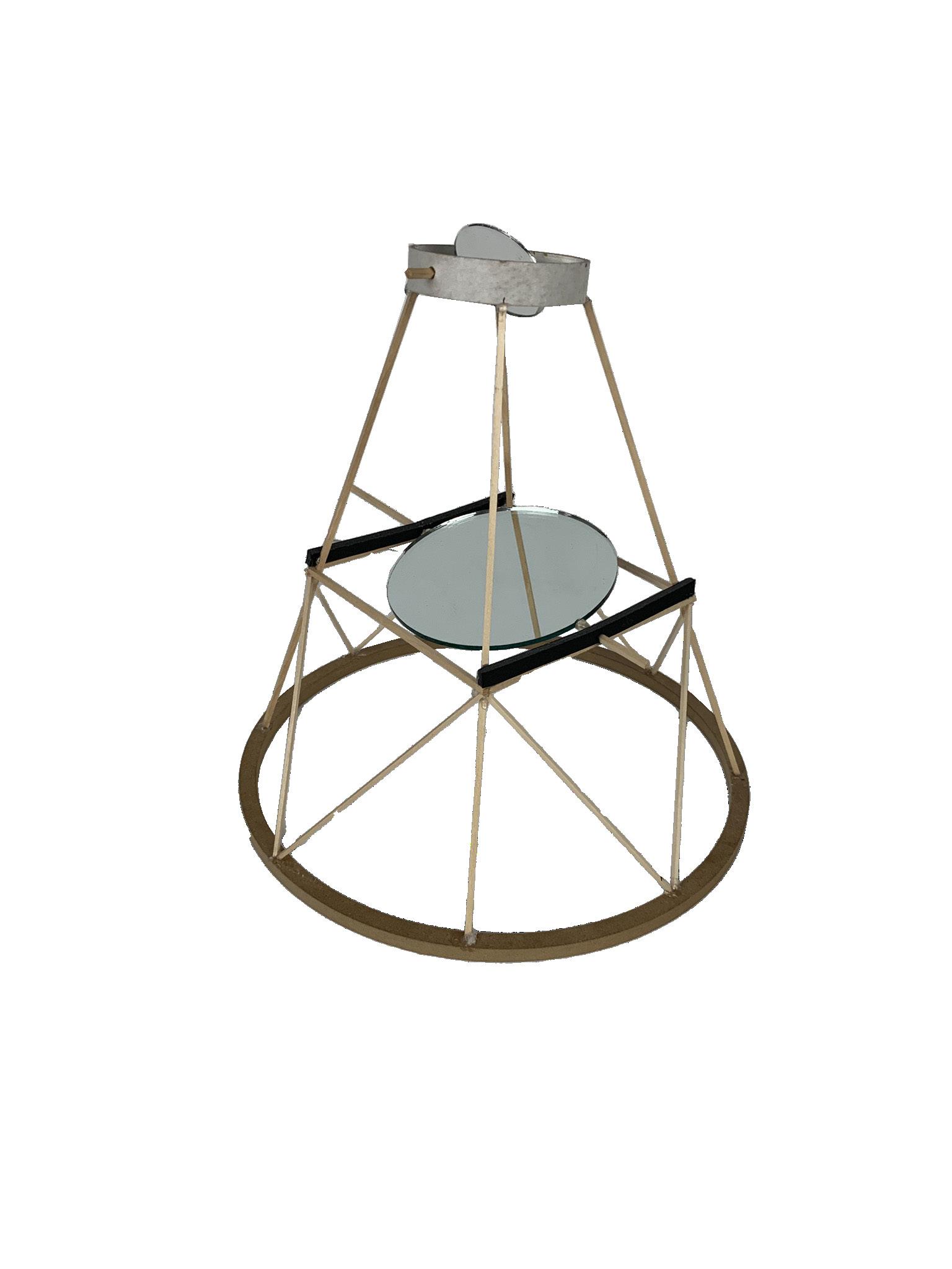 The purpose of this object is to capture different views around a site. In specific, views that display the qualities of growth and decay. In the pictures shown we see framed in the background a young gum tree. the middle mirror is showing a fully grown marsh. Finally, in the foreground the mirror is showing a dead log. We can see that we captured three different views in one glance.