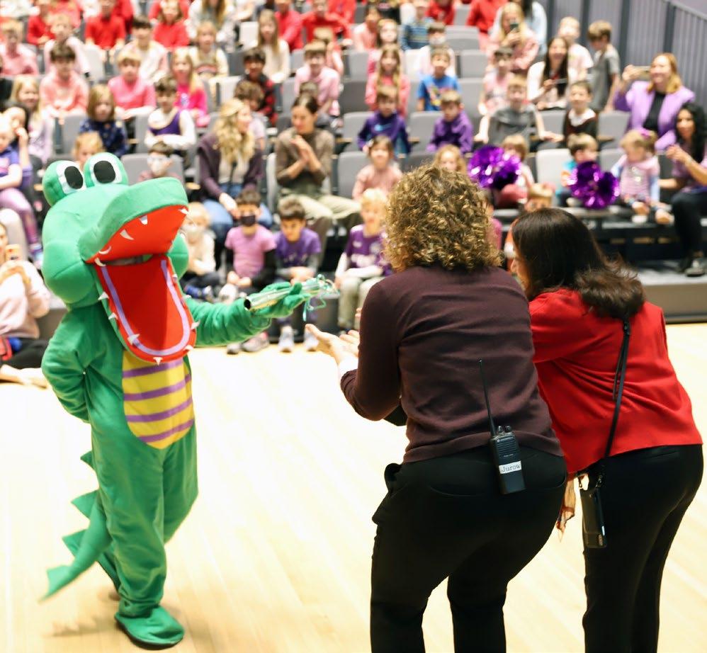 On December 1, students, parents, and faculty and staff gathered in the gym to shop for their favorite books. In addition to the actual Book Fair, the Book Fair Committee always puts together a group of coveted authors to present to our students. This year, they did not disappoint. With the help of parent Dana Raucher, author Chelsea Clinton visited the Purple through Silver Clusters on November 29, to read from two of her books and take questions from the students. It was such a treat to have a New York Times bestselling author speak with our students. And the author visits did not stop there! Author Alyson Gerber returned to Gaynor on December 6 to speak with the Green and Blue Clusters about her path to becoming a published author and the lessons she learned along the way. At the end of her presentation, Alyson stayed to sign books and gave inspiring words to any student that wanted it.