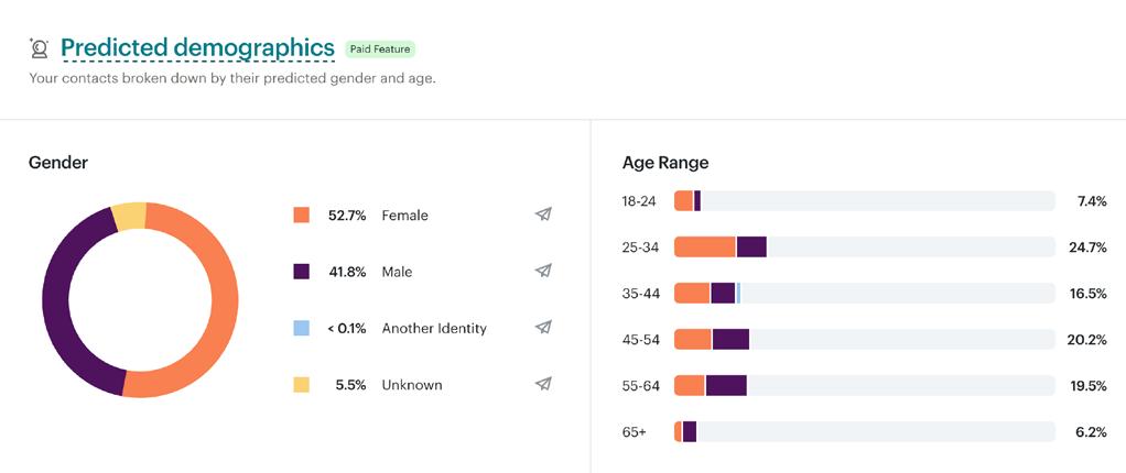 Our current database of over 8.000 contacts, consists of 52.7% female and 41.8% male, with the largest segments found in age groups that align with our target audience.