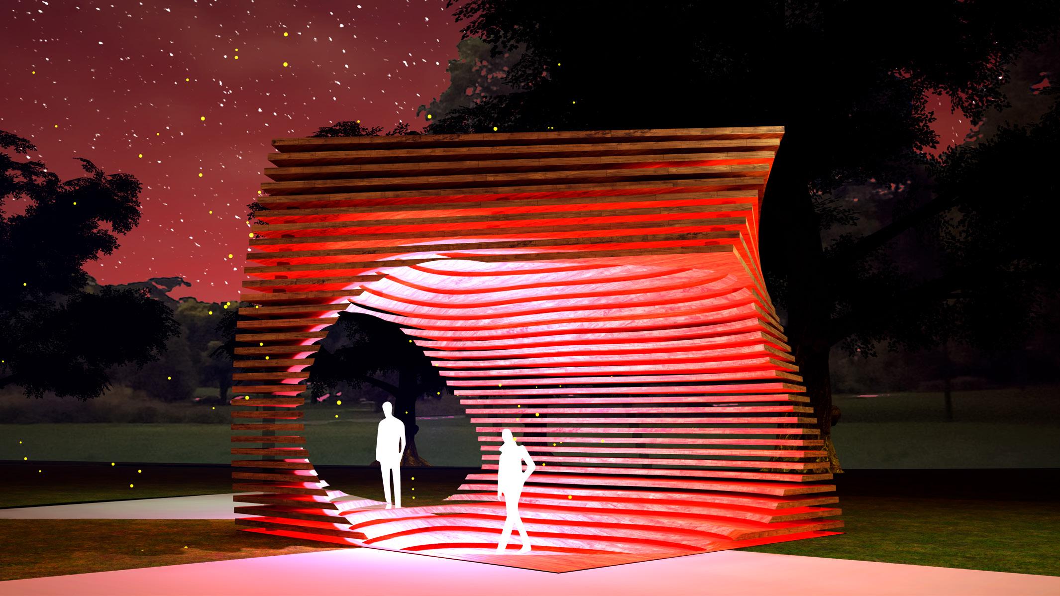 Twisting Contours Pavilion is a proposal for the MPavilion in Victoria Gardens, Melbourne that can accommodate a musical quartet and some audience.The pavlion creates a juxtaposition between a structured art installation that can be viewed from afar and the natural feel that one can sense when inside the pavilion.