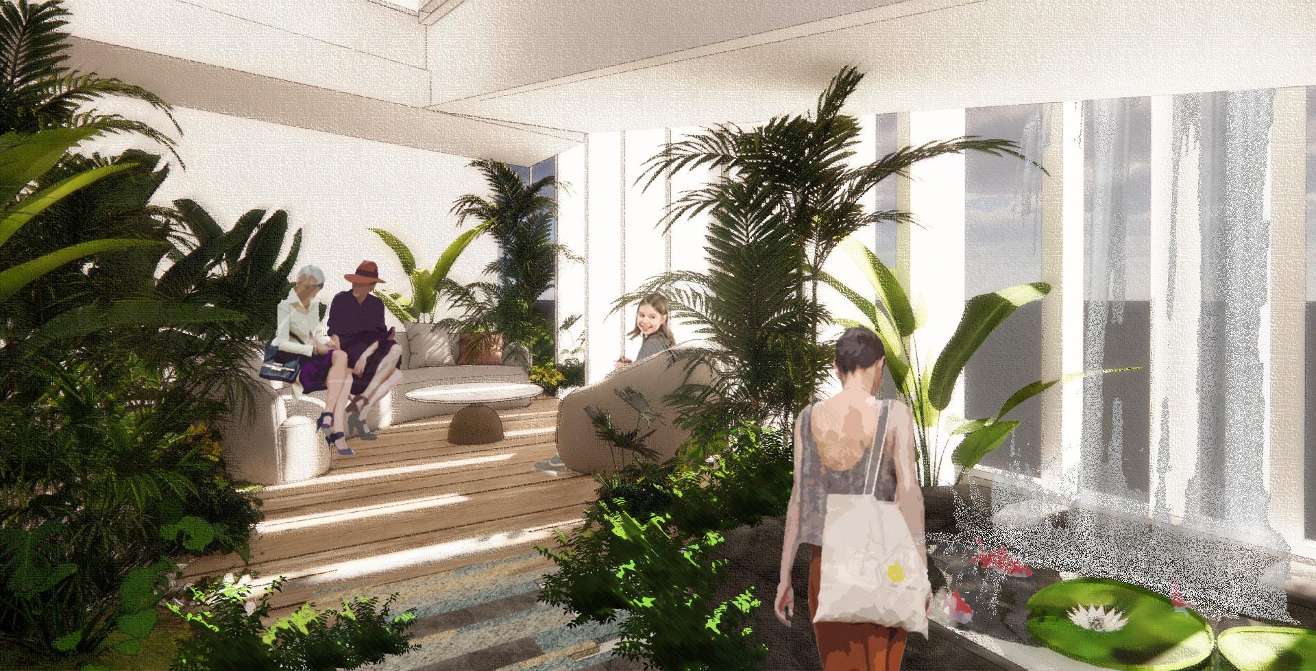 The counselling spaces and the healing garden are designed to break the stereotype of the institutionalised mental health clinics. The goal is to create a relazed and comfortable atmosphere of diverse conversation spaces with different levels of privacy to give the users the power to choose how they want to navigate through their mental health, thus reducing the psychological shame of seeking help.