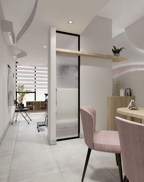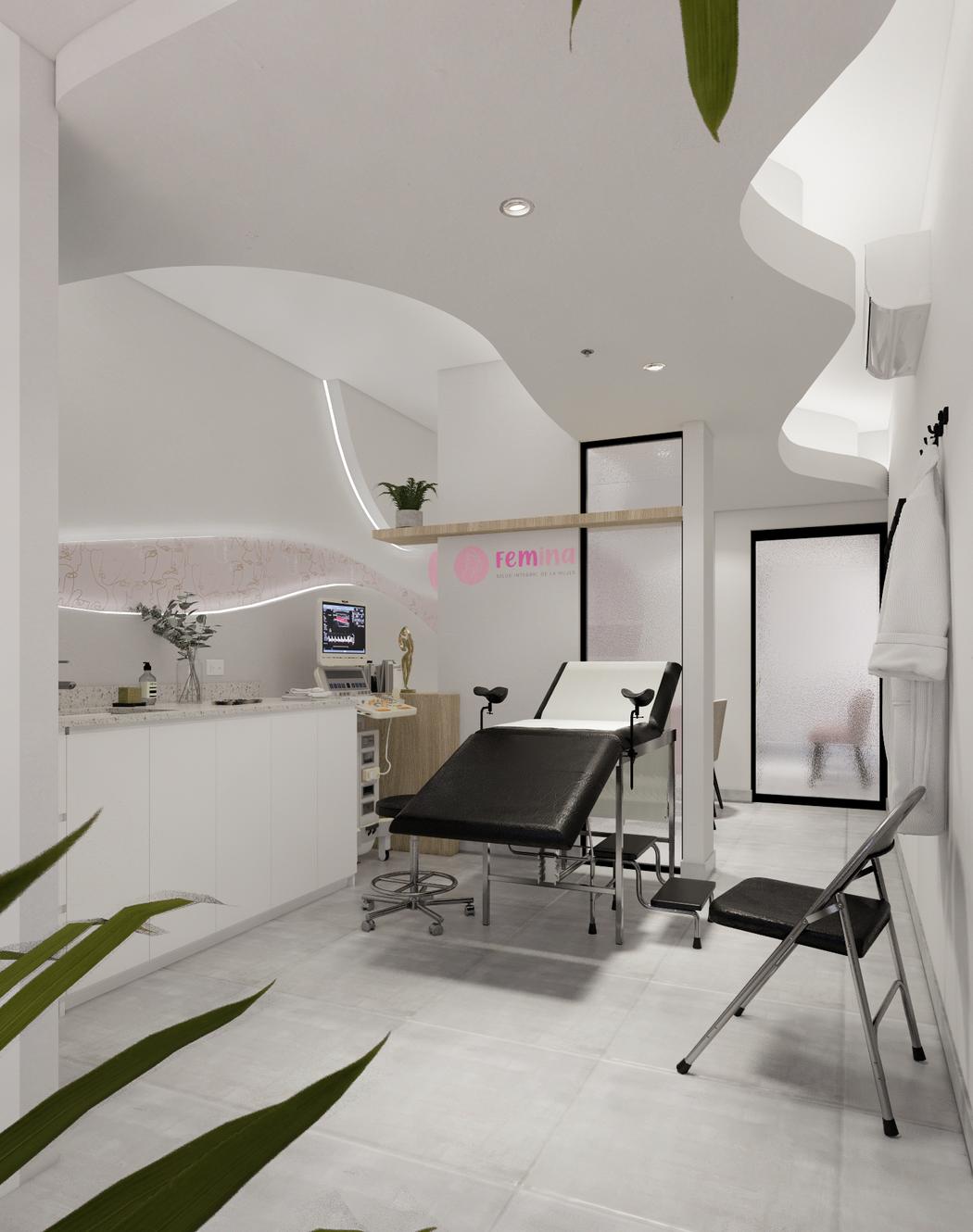 Proyecto inspirado en la especialidad del consultorio, se crea a partir de líneas sinuosas, con texturas muy sutiles evocando a la delicadeza y curvas de la mujer, se trabajó con una paleta de colores minimalista acentuando el color rosa por identidad de marca.