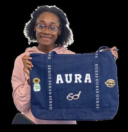 GUESS Foundation’s Manager, Caroline M, and Social Responsibility Coordinator, Jessa S, with a Daniel’s Place member during a craft project and branded totebag giveaway.