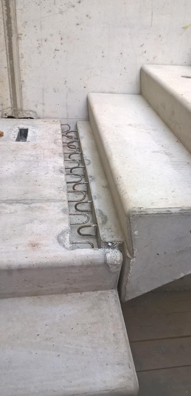 Muri prefabbricati delle scale, rampe prefabbricate e relativi pianerottoli, velette e cornici a completamento del sistema costruttivo.