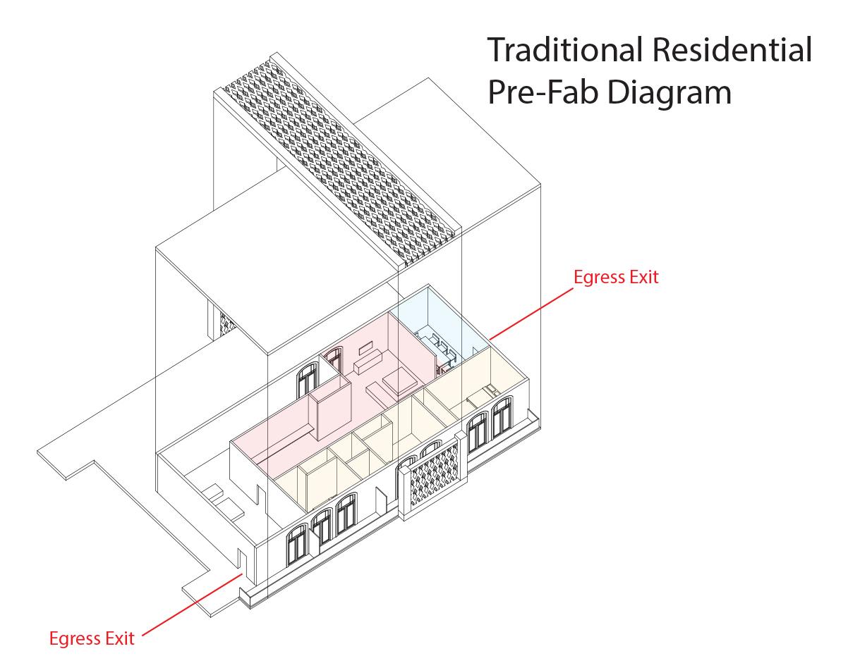 With the objective of creating sustainable and affordable architectural solutions, the design process is centered on questioning the advantages of serial production vs. custom fabrication, studying the efficiency and adaptability of the systems, comparing the pros and cons of materiality, understanding the extents of “pre” fabrication (building element vs building module), evaluating production costs and methods, etc.