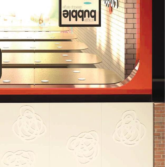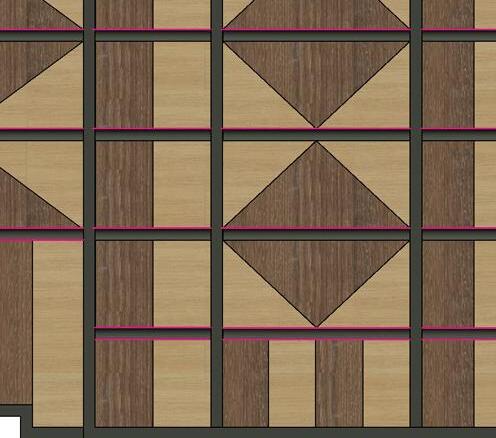SUGGESTED 16.38 HEAT STRENGTHENED LAMINATED STARFIRE GLASS WITH 5MM CLEARANCE SLOTS AROUND PERIMETER OF GLASS BLADES. SHOPFITTER TO PROVIDE MDF SOFFIT WITH MATCHING TEMPLATE TO SUIT LAYOUT TO MATCH SETOUT.