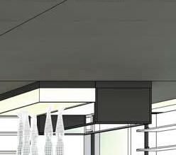 EXISTING WHITE PAINTED STEPPED CEILING SOFFIT. RETAIN IN FITOUT-IF NEED BE CUT BACK TO ENABLE FITMENT FOR ABOVE TRANSOM GLAZING.
