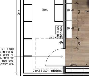 C2 C2 CC CC CD CD CE CE 1 3 8 5 9 0 0 1 5 0 0 8 0 0 75015501550105 540210 1290 7501165 1 0 0 5 9 5 CIG SAFES UNDER CIG SAFES SSF SSF SSF SSF DOOR 32 MM MDF CLAD IN 6MM SSF. SS APPLIED KICK PLATE JUSTOR HD DOUBLE ACTION HINGES ST. COL DROPPER POLE FOR POWER/DATA LOW HEIGHT WALL WITH FOLDED SS CAPPING TO EXPOSED ENDS EXPRESS BELTED CHECKOUT 8 0 0 3 0 0 1 1 0 0 9 0 0 SWING ACCESS DOOR WITH DOUBLE ACTION JUSTOR SS HINGES. SS FACE KICKPLATE BOTH SIDES OF 33 MM MDF PFB. 3011959208451025540 4555 INFILL IMPULSE JOINERY UNIT TO MATCH COUNTER FINISHES 1 0 0 1 1 0 0 SS KICKER 1 1 0 0 9 0 0 1 0 0 9 0 0 SSF SSF SSF 3 0 0 8 0 0 SS KICKER L01 SS KICKERS TO JOINERY FULLY INTEGRATED BELTED CHECKOUTS. FINISHES TO MATCH. 1 2 0 0 1 0 0 1 1 0 0 LOW HEIGHT JOINERY CLAD IN SOLID SURFACE. CORIAN 6MM GLACIER WHITE. EXPRESS BELTED CHECKOUTS (x2) 155015505100 SERVICE COUNTER PFB CONSTRUCTION SS KICK PLATE 1 0 0 8 0 0 9 8 5 SS FACE KICKPLATE 1OO MM L01 L01 SSF JOINERY MDF CLAD IN 6MM CORIAN,GLACIER WHITE. GRAIN DIRECTION L01 GRAIN DIRECTION L01 3 0 8 7 0 3 0 0 1 2 0 0 30 10885885100 UNDER BENCH SHEETMETAL CIG DRAWERS SS KICKER 8 0 0 1 0 0 DROP POLE WITH DATA SEGRETATION ADJACENT TO COLUMN GRID LINE CD-C2 P4 DRAWINGS TO BE READ IN CONJUNCTION WITH FINISHES SPECIFICATION SCHEDULE # SCHE01 ALL FINISHES TO BE INSTALLED AND APPLIED STRICTLY IN ACCORDANCE WITH THE MANUFACTURER'S INSTRUCTIONS AND RECOMMENDATIONS. ALL COLOURS TO BE CONFIRMED BY TENANT PRIOR TO THE ORDERING OF ANY LISTED ITEMS IN THES SCHEDULE BUILDER TO ALLOW TO PAINT WALLS BEHIND REFIGERATION CASES TO MATCH ADJOINING. ALL PERIMETER WALLS TO BE PAINTED. SIGNAGE TO BE MOUNTED ON FACE OF BULKHEADS/ WALLS BY TENANT. ENSURE PAINT FINISH BEHIND GRAPHIC PANEL. SS WF STAINLESS STEEL KICKER 150 MM WALL TYPE FINISH FINISHES CODES DECOR NOTES PF PAINT TYPE FINISH TF TILE FINISH ICP INSULATED PANEL FINISH LF JOINERY FINISH ALL EXPOSED PREP AREA CORNERS: LINED WITH 1.6MM STAINLESS STEEL 50x50mm CORNER ANGLE OR CHANNEL FULL HEIGHT ALL EXPOSED PREP AREA WALL ENDS LINED WITH 1.6MM STAINLESS STEEL WALL GAURD/CAPPING FULL HEIGHT ALL EXPOSED COLUMNS IN SALES AREA: LINED WITH 1.6MM STAINLESS STEEL 50x50mm CORNER ANGLE OR CHANNEL TO 1500AFFL PAINTED FINISH OVER, UNLESS OTHERWISE STATED 100mm BLACK VINYL FEATHER EDGE SKIRTING TO BASE, UNLESS OTHERWISE STATED PREP AREA STAINLESS STEEL TO ALIGN WITH EXHAUST CANOPIES OVER UNLESS OTHERWISE NOTED ALL STAINLESS STEEL ANGLES TO BE COUNTERSUNK STAINLESS STEEL SCREW FIXED AT 300MM CENTRES ALL EXPOSED EDGES OF ROLLER DOCK SHUTTER 6mm HOT DIPPED GALVANSED STEEL ANGLES 150x150 FULL HEIGHT ALL EXPOSED STOCKROOM EDGES 6mm HOT DIPPED GALVANSED STEEL ANGLES 150x150 FULL HEIGHT ALL EXPOSED STOCKROOM WALLS 1500 CHECKERPLATE CLADDING ICP(150) INSULATED PANEL 150MM FINISH TV TIMBER VENEER HAVWOODS RECLAIMED BARN OAK RUSTIK 100-130MM 15 MM THICK T&G WAX PC1 DULUX POWDERCOAT BLACK SATIN T2 PB FORMED SUSPENDED FEATURE CEILING. 200 MM BLACK PAINTED RETURNS, WITH INSET DIGITAL TIMBER LOOK PLANK FLOORING. WP01 LARGE FORMAT DIGITAL PRINT. PLASTER TO BE SUITABLE PREPARED WITH SUITABLE SEALER PRIOR TO APPLICATION. WP02 LARGE FORMAT DIGITAL PRINT. PLASTER TO BE SUITABLE PREPARED WITH SUITABLE SEALER PRIOR TO APPLICATION. TF01 CERAMIC WALL TILES DELI PREP WHERE NOTED STACK BOND PATTERN SET-OUT AS PER DRAWINGS 2MM GAPS WITH WHITE MATCHING EPOXY GROUT TF02 CERAMIC WALL TILES GENERAL STACK BOND PATTERN SET-OUT AS PER DRAWINGS 2MM GAPS WITH WHITE MATCHING EPOXY GROUT S/S FOOT RAIL FIXED TO FLOOR SFR V1 Armstong CX SKIRTING 100MM Fa8x850511 L01 PREFINISHED BOARD ‘POLYTEC 'BOSTON-OAK' LAMINATE L02 PREFINISHED BOARD “CLASSIC WHITE TEXTURED”BENCHTOP, 21MM THICK HPL L03 PREFINISHED BOARD “WHITE MELAMINE” L04 BLACK MELAMINE 12MM MRM LOW PRESSURE SSF SOLID SURFACE CORIAN GLACIER WHITE PRICE GROUP A P1 PAINT DULUX DULUX –‘KLAVIER’ P2 PAINT DULUX DULUX –‘LEXICON QTR’ P2B PAINT DULUX DULUX –‘LEXICON QTR’ACRATEX P3 PAINT DULUX DULUX –‘GREY PAIL' P4 MURROBOND MICACEOUS IRON OXIDE PAINT CARBON NOTE METCASH RETAIL DEVELOPMENT 71 HUNTINGWOOD DRIVE HUNTINGWOOD NSW 2766 PH: (02) 8822 3600 REVISION: DRAWING: CLIENT: SITE: AS SHOWN PROJECT: DRAWN: CHECKED: DATE: PROJECT NUMBER: PROJECT STAGE: SHEET NO: SCALE: @ A1 TENDER ISSUE THIS DRAWING IS FOR DESIGN GUIDANCE ONLY. FINAL DETAILS MUST MEET SITE CONDITIONS, THE REQUIREMENTS OF ALL RELEVANT AUTHORITIES, APPLICABLE AUSTRALIAN STANDARDS AND THE BUILDING CODE OF AUSTRALIA. THE CONTRACTOR MUST VERIFY ALL DIMENSIONS ON SITE BEFORE COMMENCING ANY WORK OR MAKING SHOP DRAWINGS. FIGURED DIMENSIONS ARE NOT TO BE USED, SCALED DIMENSIONS MUST BE CHECKED. DO NOT SCALE THIS DRAWING. THE DRAWING IS THE PROPERTY OF METCASH LTD. AND MUST NOT BE RETAINED, COPIED OR USED WITHOUT WRITTEN PERMISSION OF METCASH RETAIL DEVELOPMENT 2 221204 THORNHILL PARK IGA + LIQUORCENTRAL SQUARE LANDMARK DEVELOPMENTS 1.12.2022 PS NO 2 SADIE AVENUE, THORNHILL PARK 3335 TENDER 103 CHECKOUT DETAILS @ A1 1 50 103 PLAN SERVICE & CHECKOUTS 1 @ A1 103 3D Ortho 2 @ A1 1 20 103 Detail Section B 4 @ A1 1 20 103 Elevation Left 8 @ A1 1 20 103 Elevation Front 9 @ A1 1 20 103 Elevation Back 10 @ A1 1 20 103 Detail Section A 3 REVAMENDMENT DETAILSDATEBY 1INNTERNAL ISSUE31/03/2023PS 2TENDER ISSUE20/04/2023PS