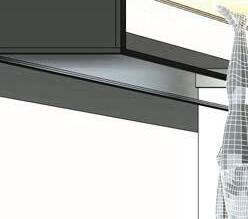 GLAZING PANELS TO PASS THROUGH SOFFIT OF CEILING( MDF OR PLASTERBOARD)CUT INTO TO SHOFRONT CEILING. CLEARANCE FIT REQUIRED WITH GLAZING CHANNELS FIXED TO STRUCTURAL DETAILS BY ENGINEER. REFER 107, DETAIL O2 FOR INDICATIVE SECTION. SETOUT PER 1O2 DRAWING
