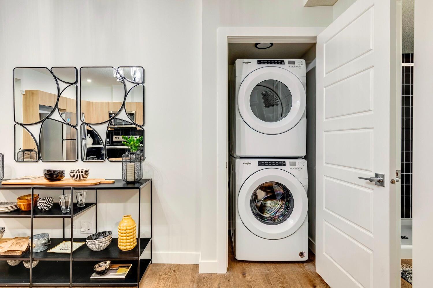 PRODUCTCODE:YWED6605MC WHIRLPOOL Front load dryer with steam 7.4cubicfeet PRODUCTCODE:WFW6605MC WHIRLPOOL Front load washer with steam 5.2cubicfeet PRODUCTCODE:W10869845 LAUNDRY STACK KIT
