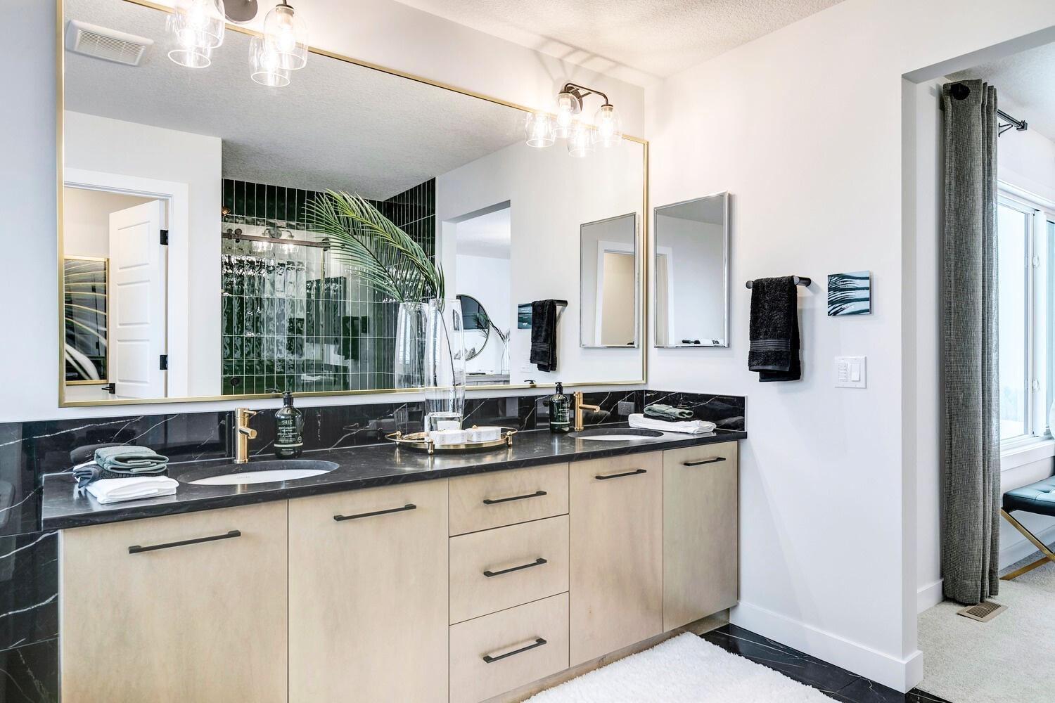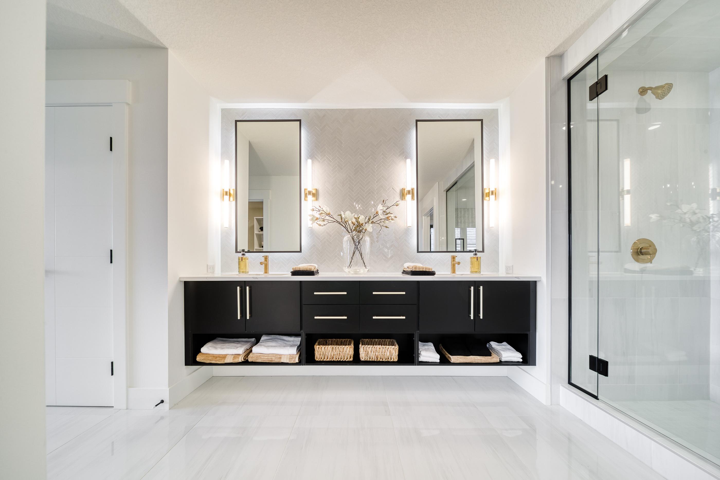 Add 5/8" black frame to selection 3" above vanity splash and 4" above pedestal PRODUCTCODE:ADD-MIRRR-15