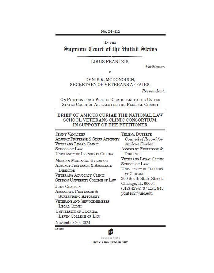 The VLI submitted its fifth amicus brief with to the Supreme Court of the United States through the NLSVCC. this brief was submitted in support of the petitioner in the case Frantzis v. McDonough.