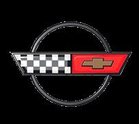 The Corvette emblem embraces the race-track-inspired specs of this Corvette model and the family history of Chevrolet, and is known the world over. In 1953, Robert Bartholomew designed the first Corvette logo using the American flag and the finishline flag. The American flag had to be dropped due to laws concerning its use in advertising.