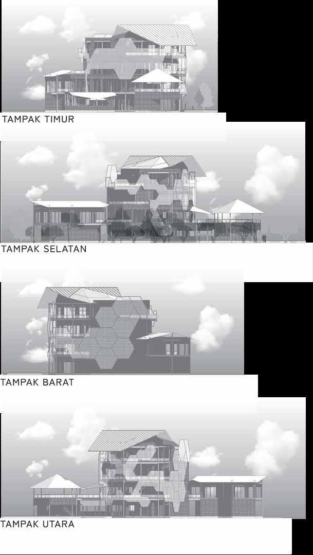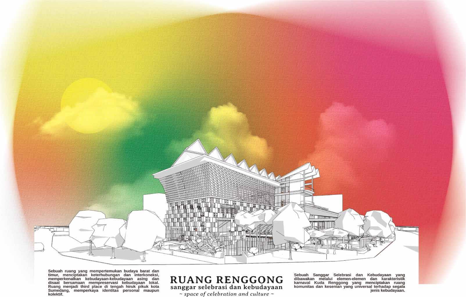 Ruang-ruang di dalam Ronggeng-Renggong saling berhubungan melalui rancangan Split Level & Open Design, yang menghadirkan keberadaan beragam budaya disaat yang bersamaan.