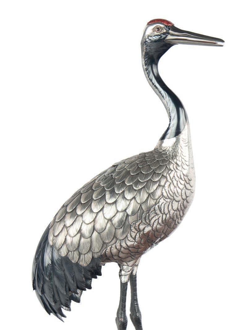 The artist Sano Takachika was a master of hammering, metal carving and chiselling and a recorded member of the Tokyo Chokokai (Tokyo association of carvers and sculptors) He is known to have exhibited at many of the expositions of the period including the Japan Art Society spring exhibition of 1894, where he exhibited gold and silver figures of a heron and a crow.
