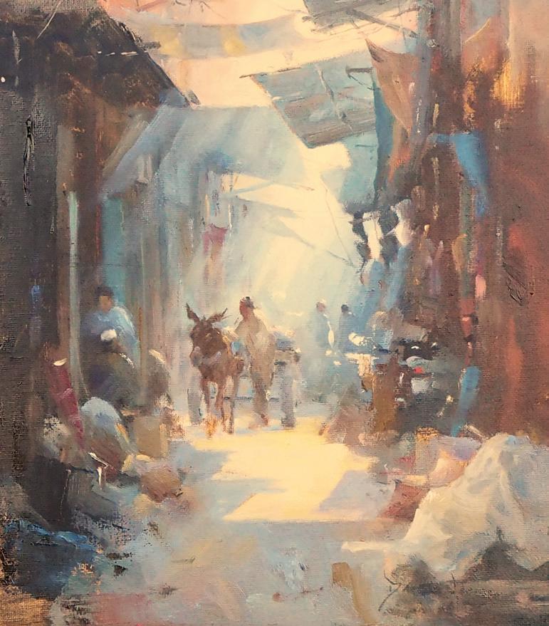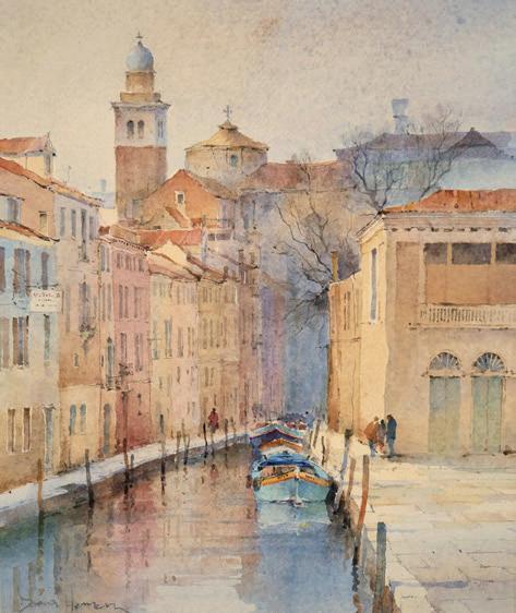 David’s approach to painting is very much concerned with capturing atmosphere and a sense of time and place, with an emphasis on producing good paintings rather than topographical accuracy. He works outside as much as possible and travels extensively. He is equally likely to be seen standing with a sketchbook on the North York Moors, as to be found sitting by a canal in Venice or dragging an easel through the Arabian Desert.