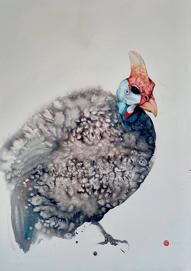 Karl Martens · Guinea Fowl · Watercolour · 41 x 30 in.