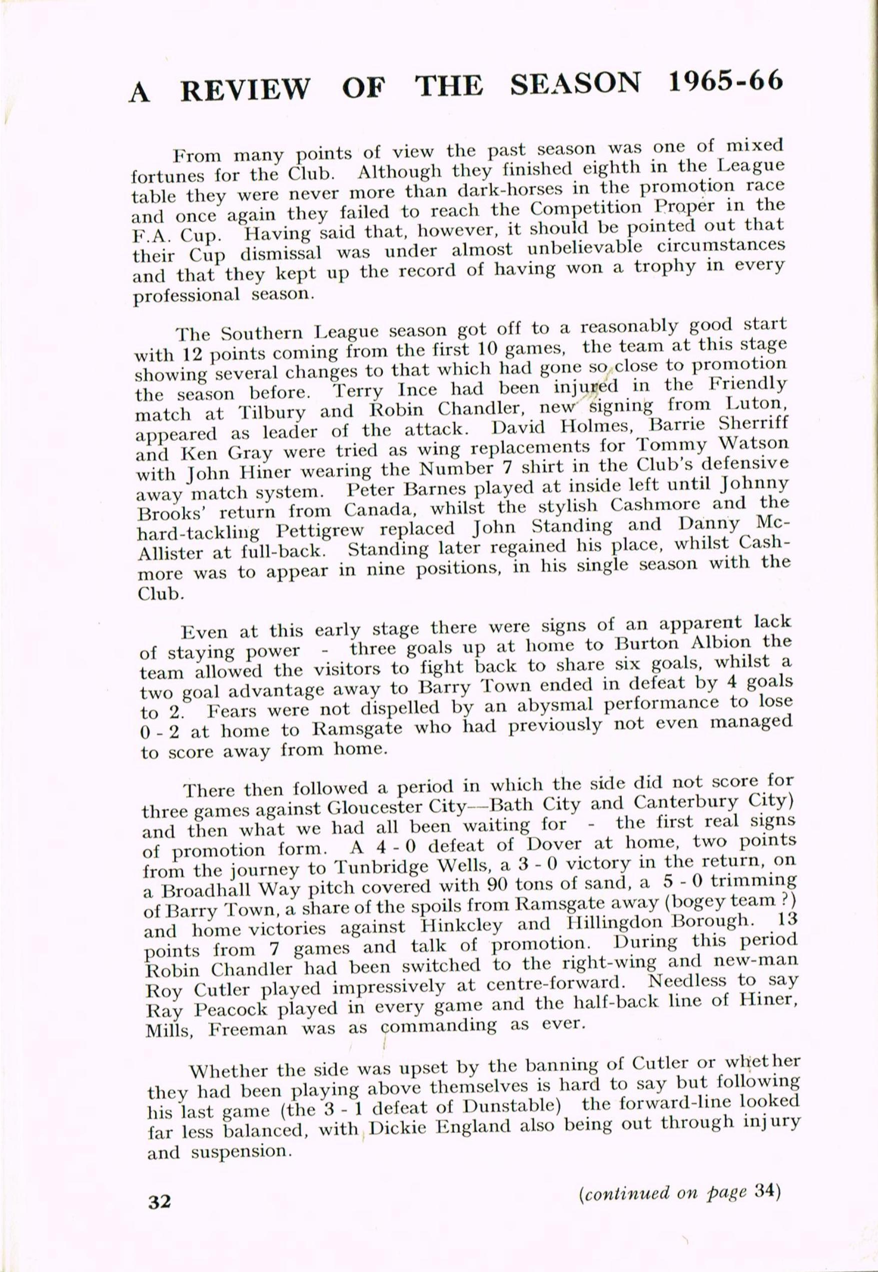 Stevenage Town FC Handbook 1966-67