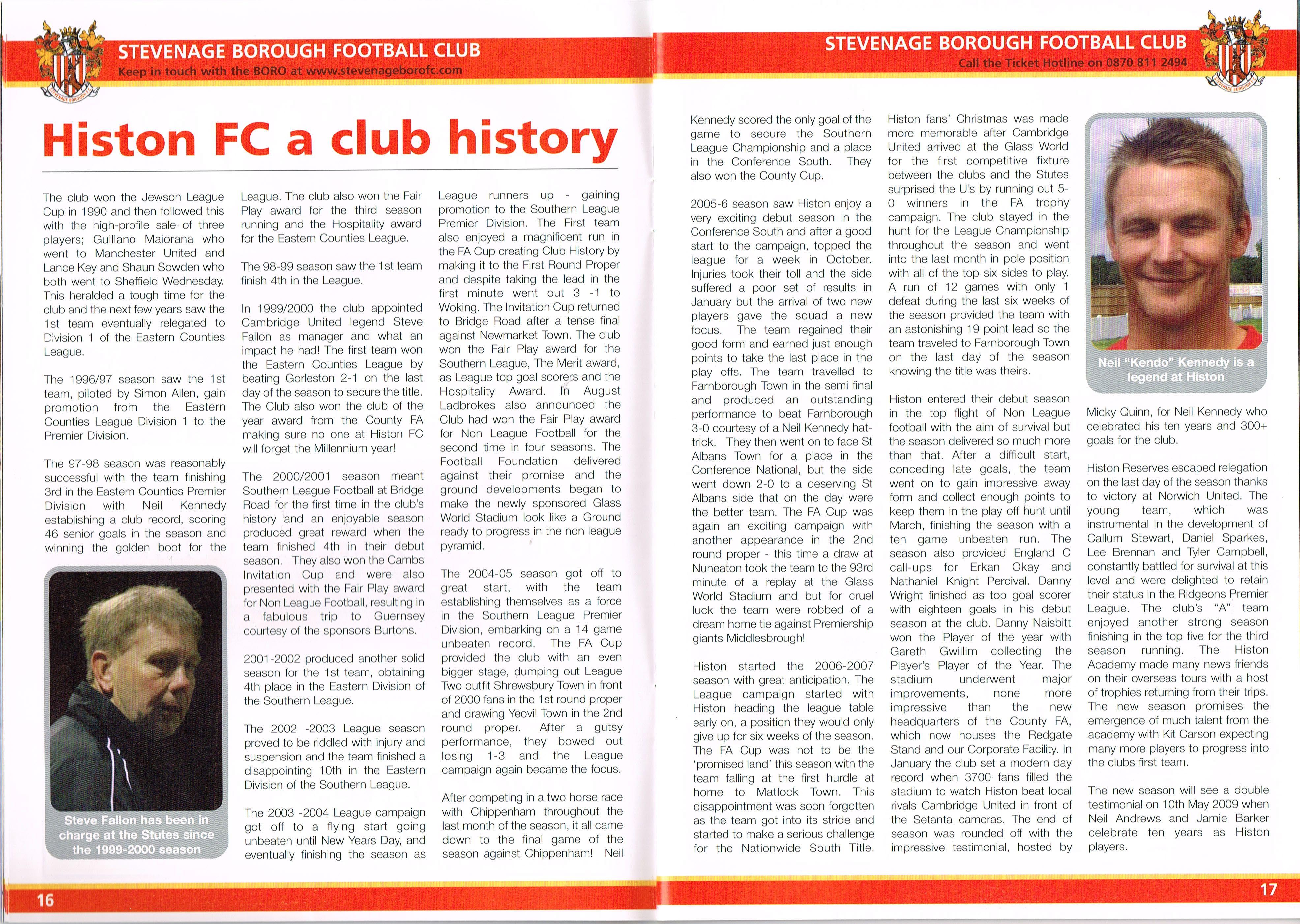 Stevenage v Histon, 18/11/2008 by Stevenage Football Archive - Issuu