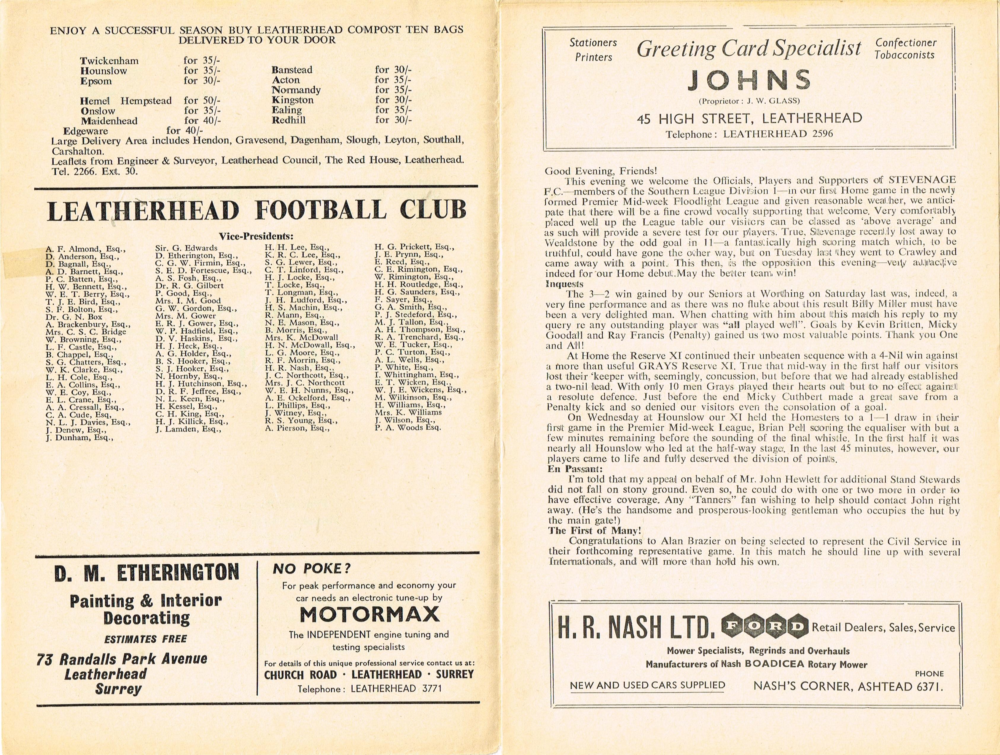 Leatherhead v Stevenage, 12/10/1965