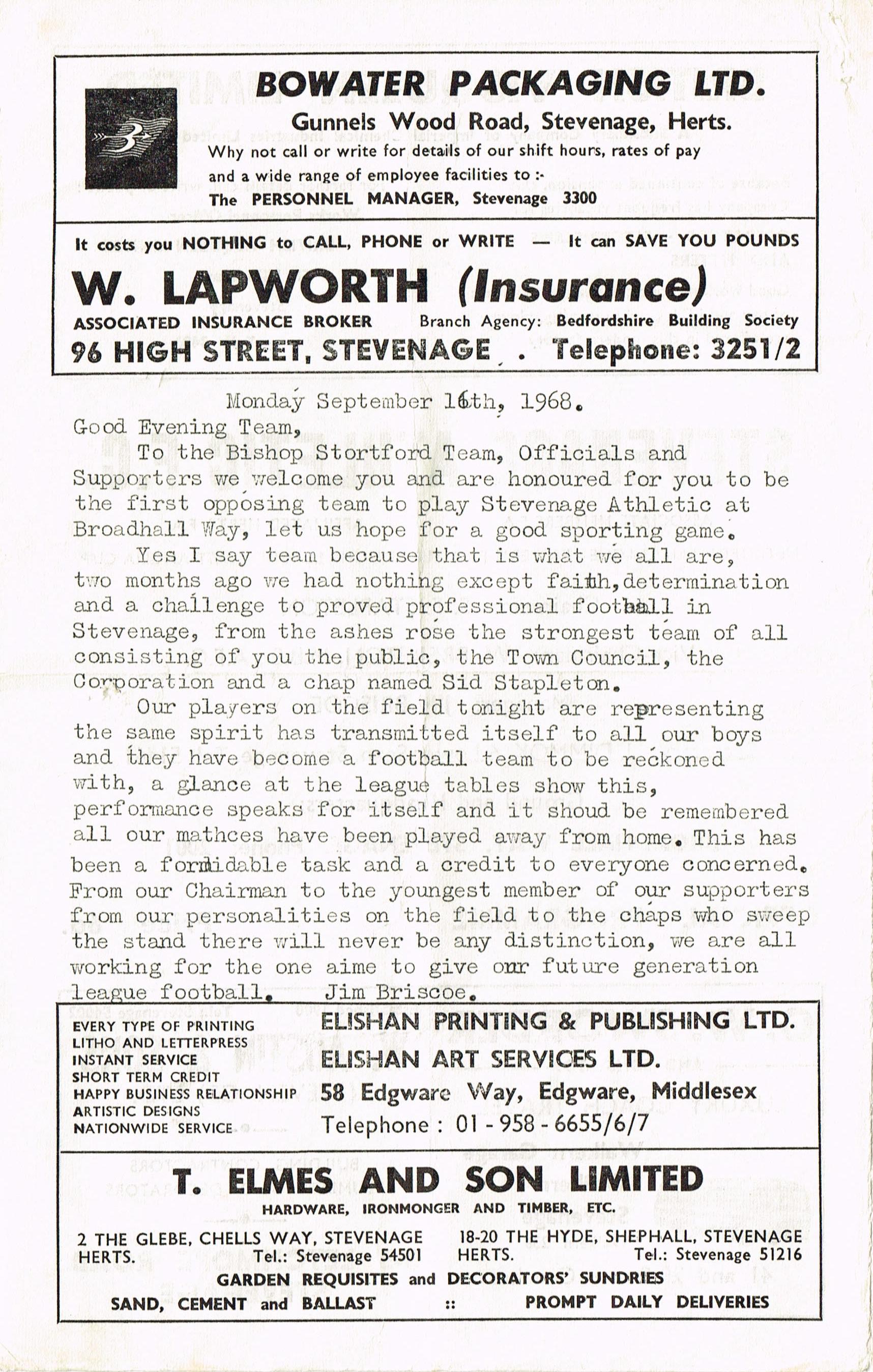 Stevenage v Bishop's Stortford, 16/09/1968 by Stevenage Football Archive - Issuu