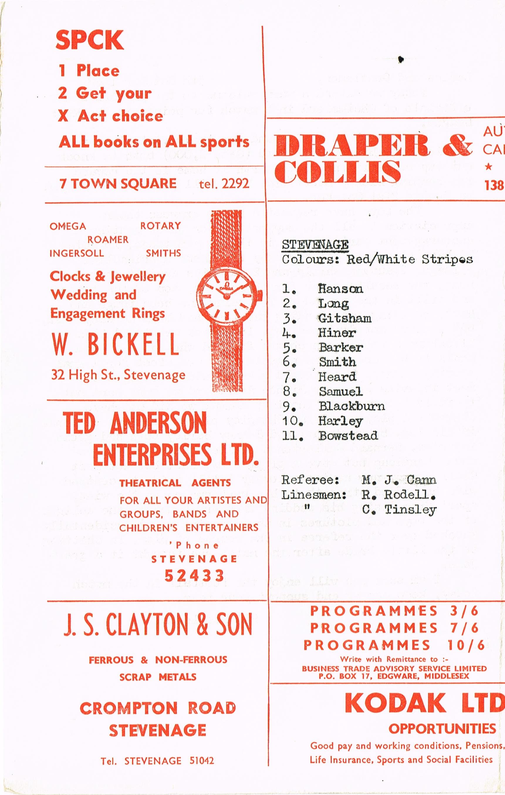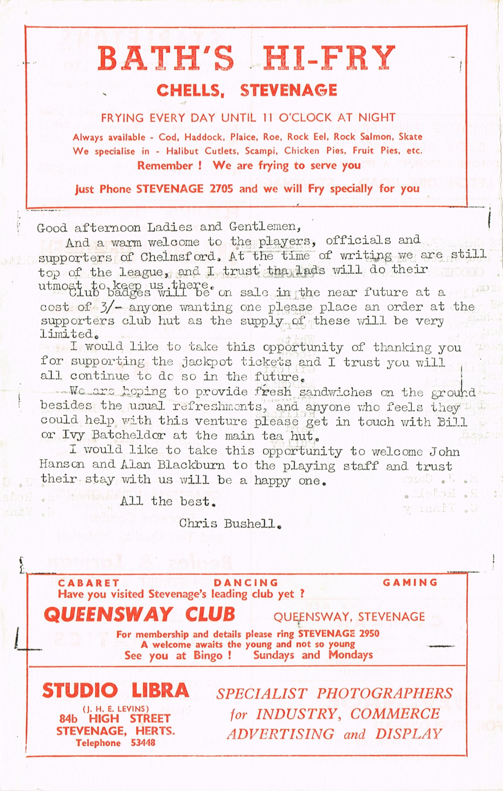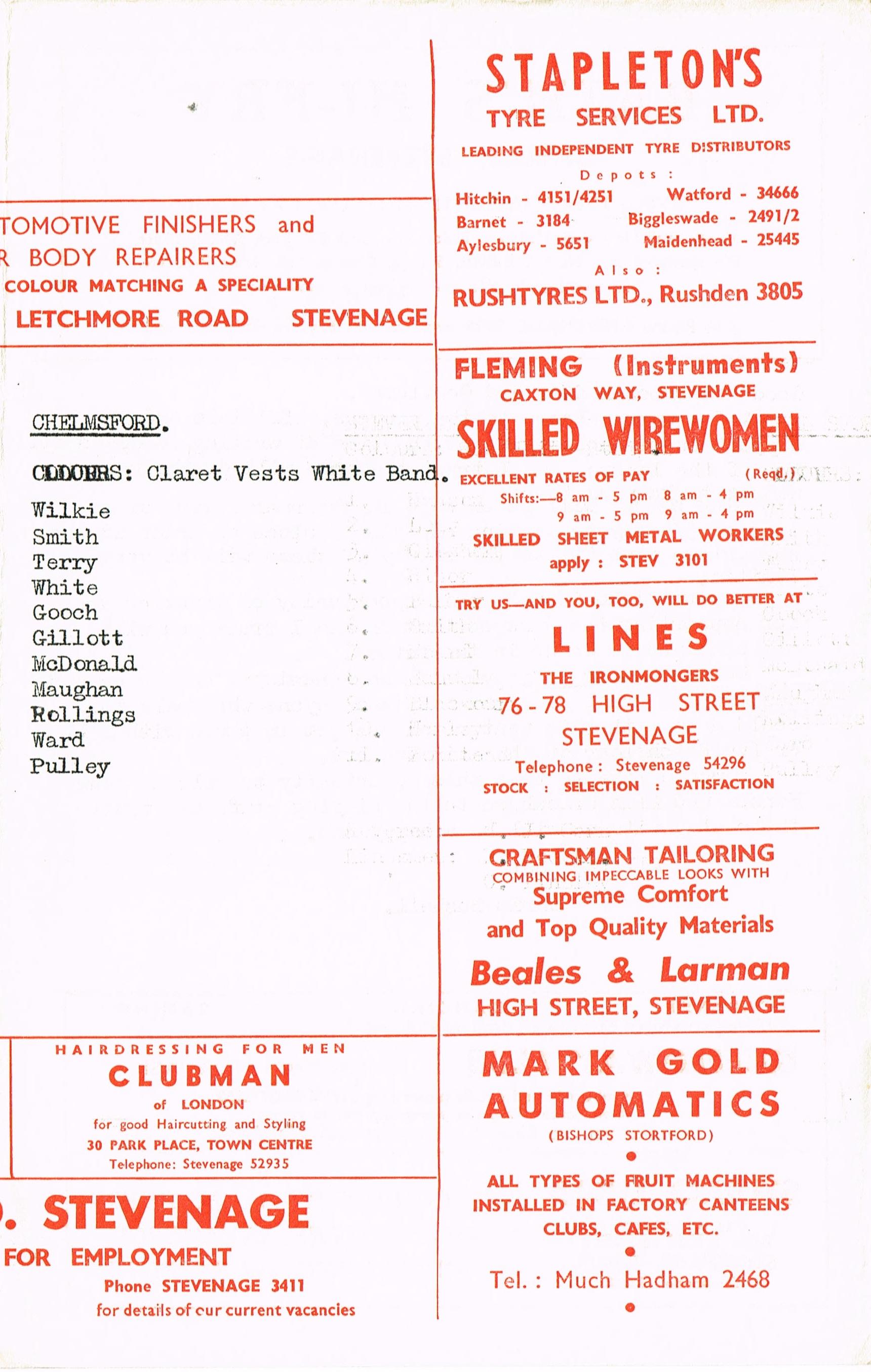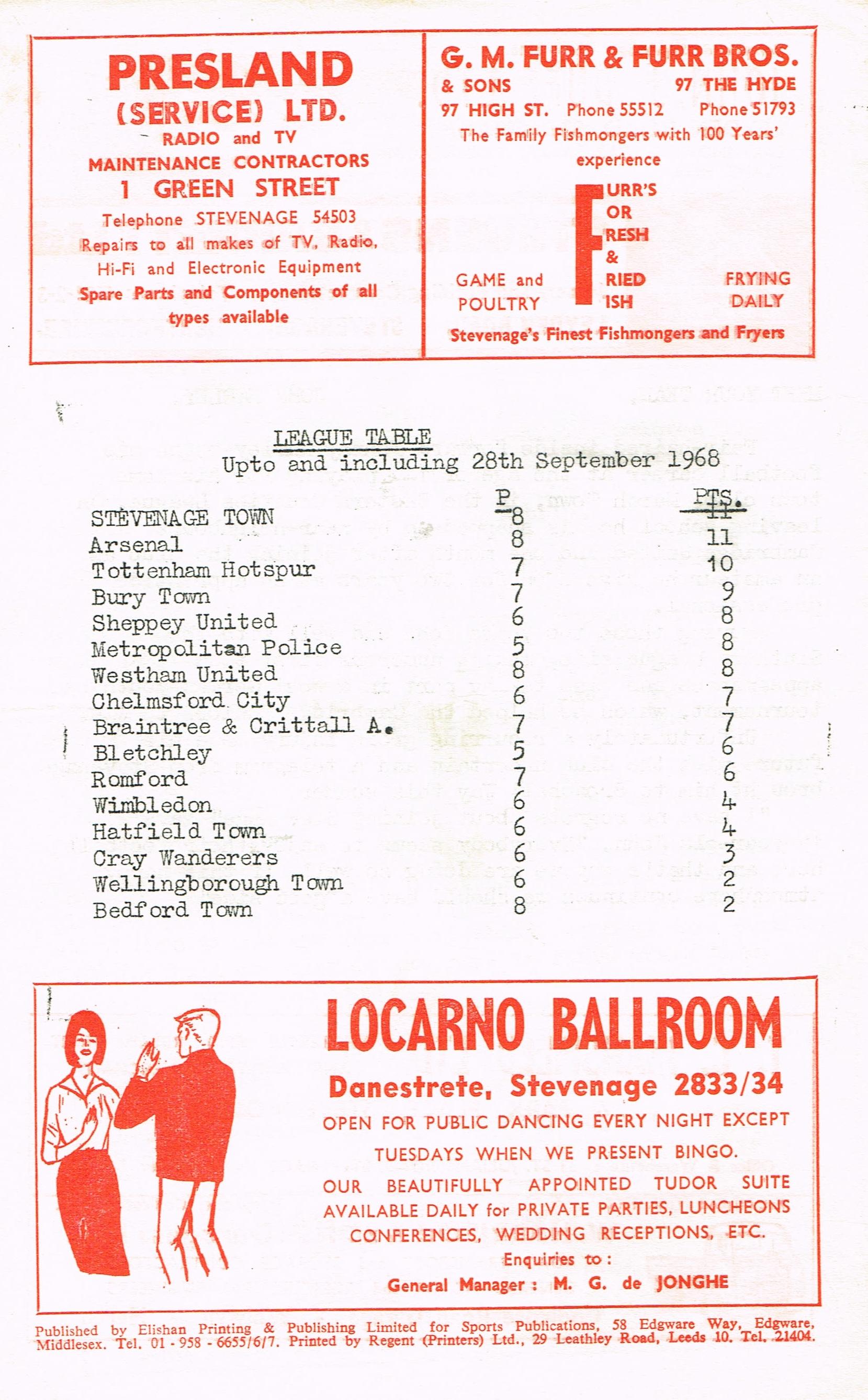 Stevenage v Chelmsford Res, 05/10/1968