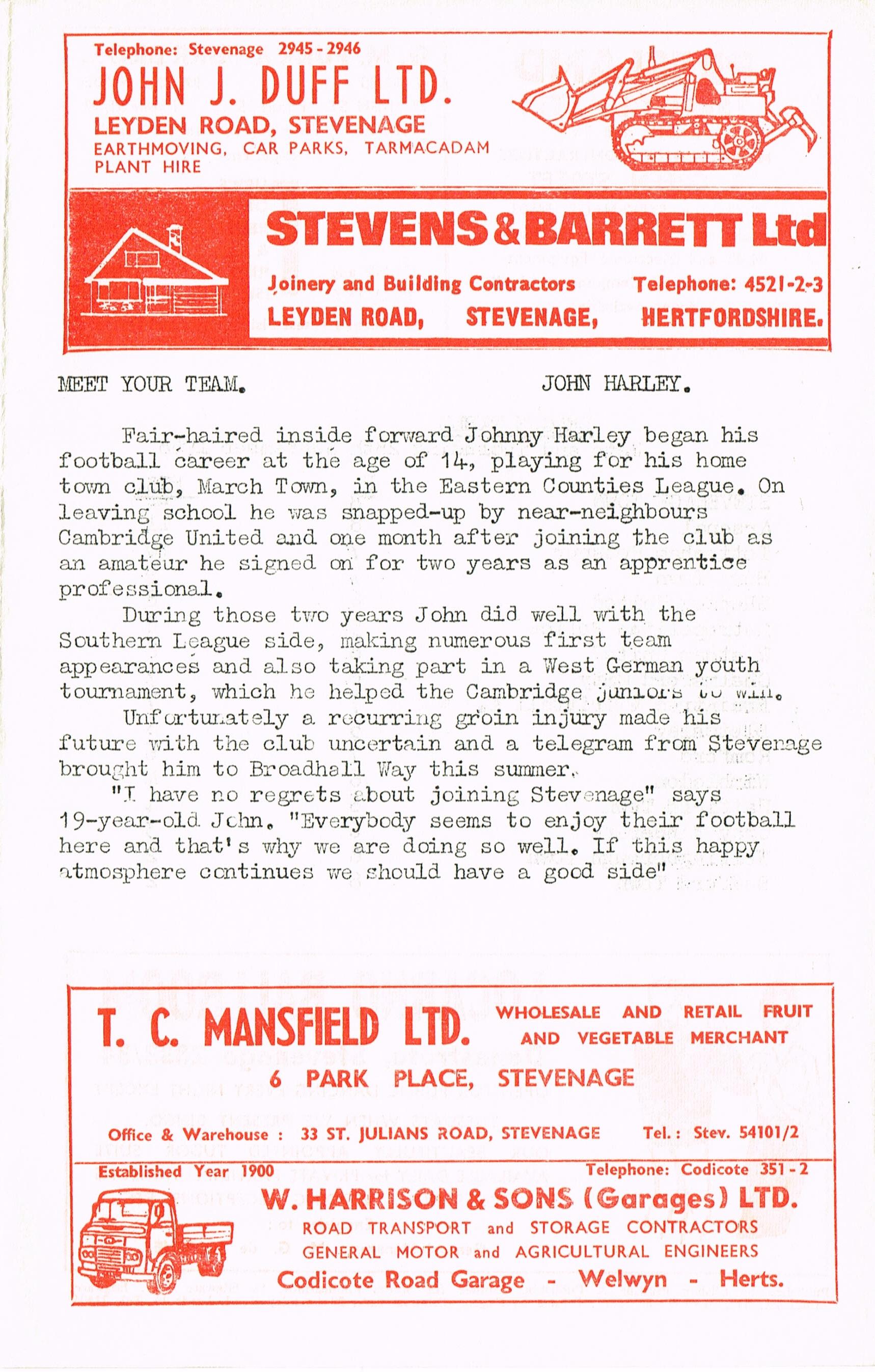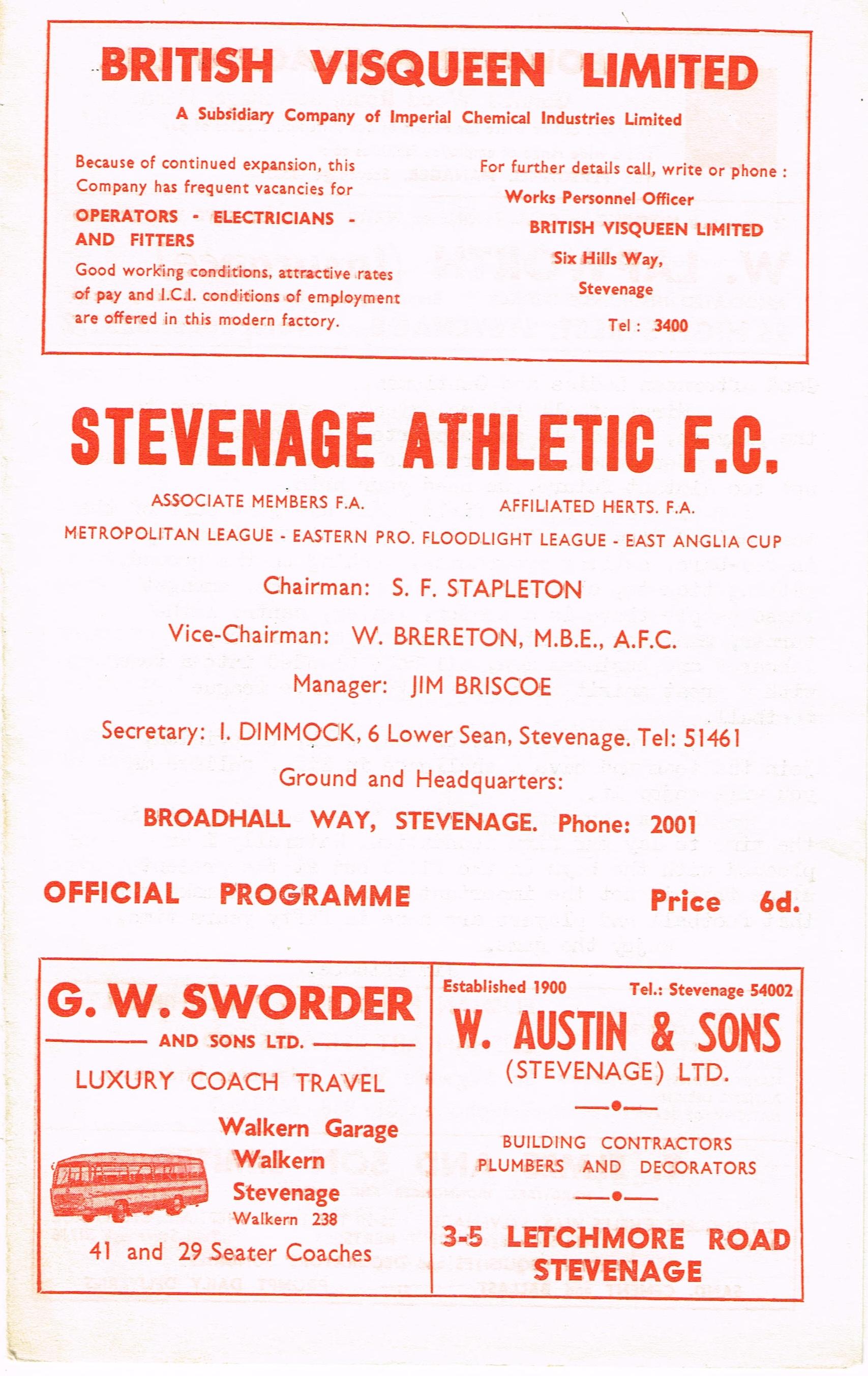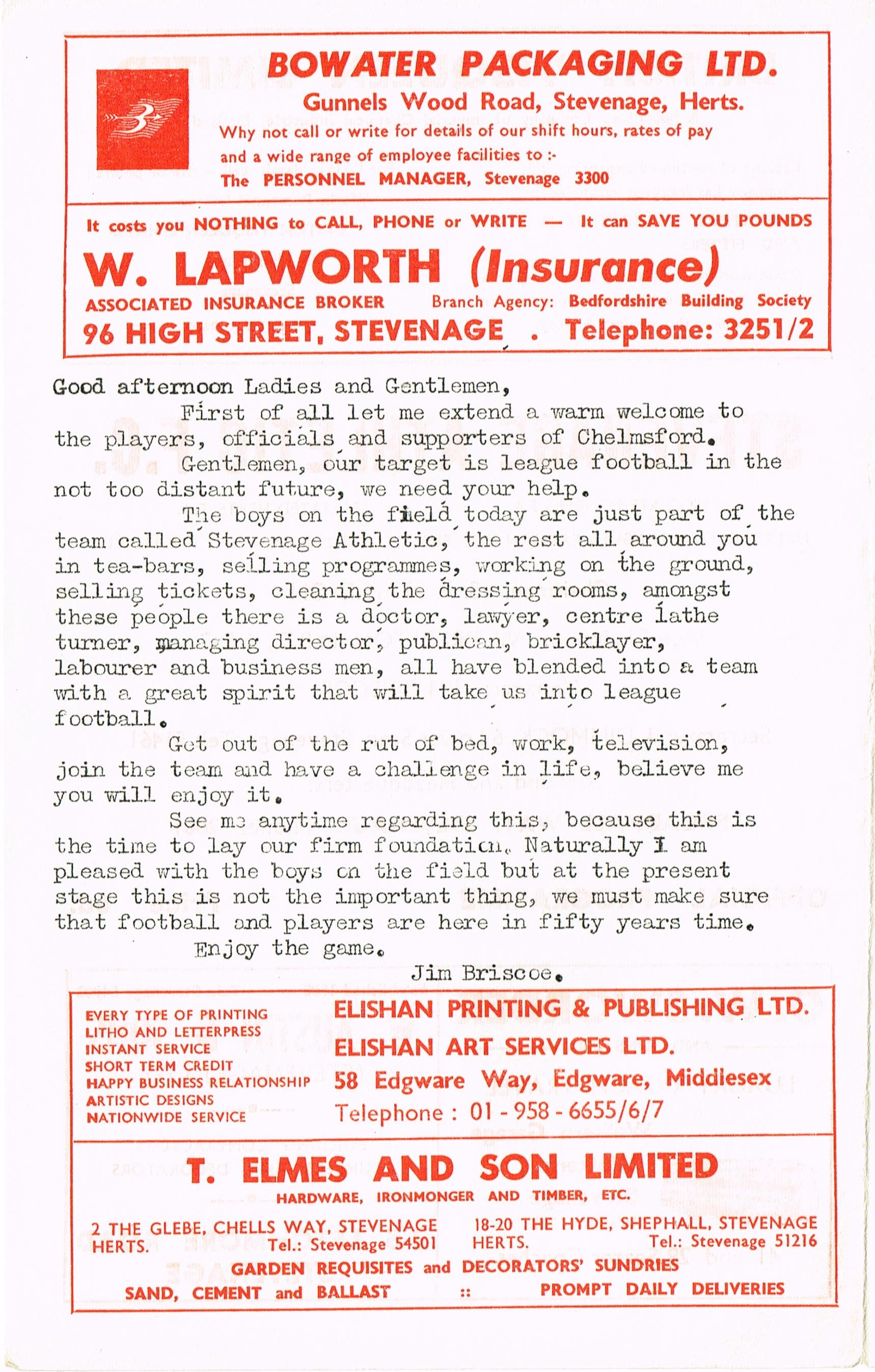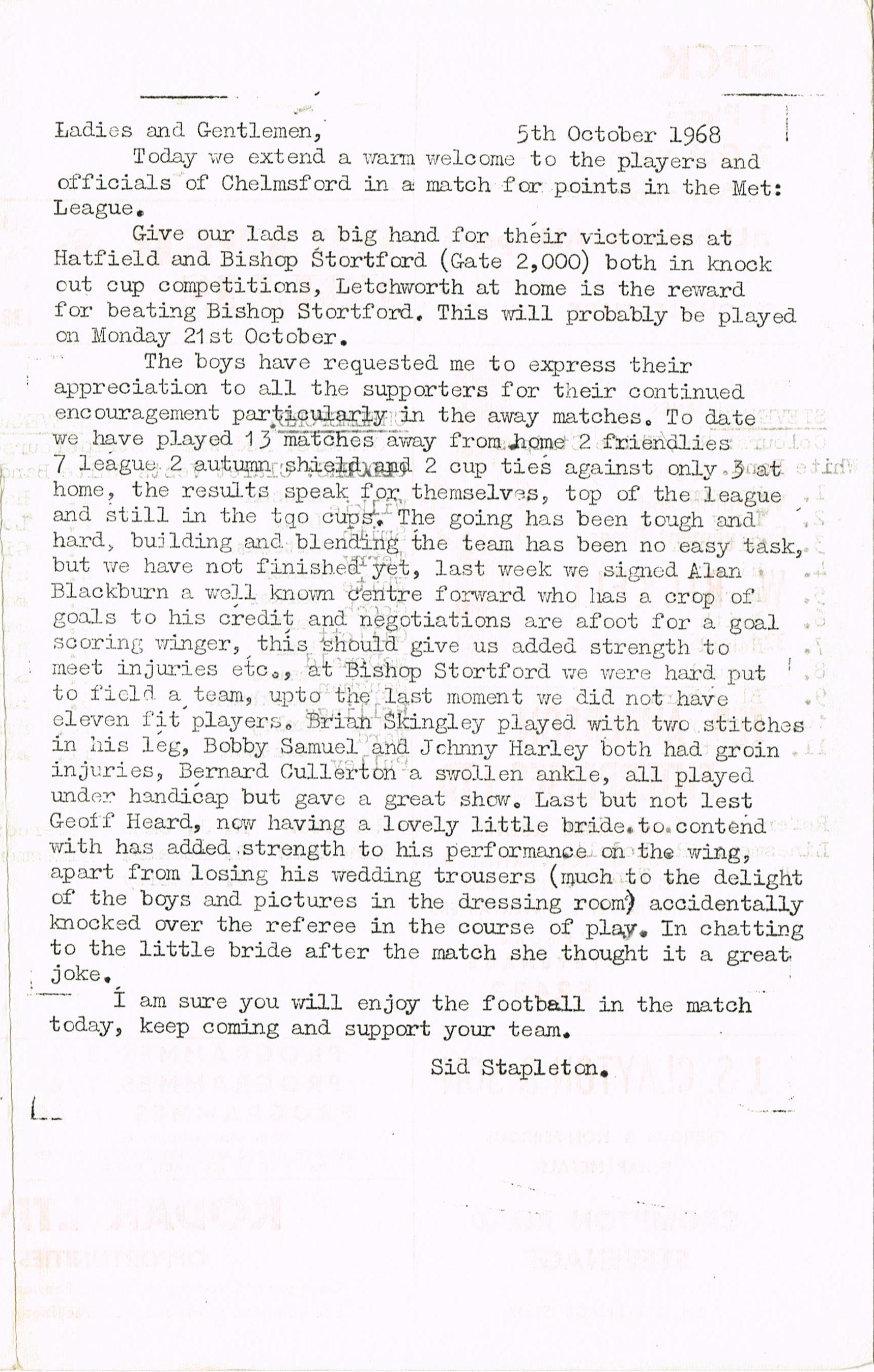 Stevenage v Chelmsford Res, 05/10/1968