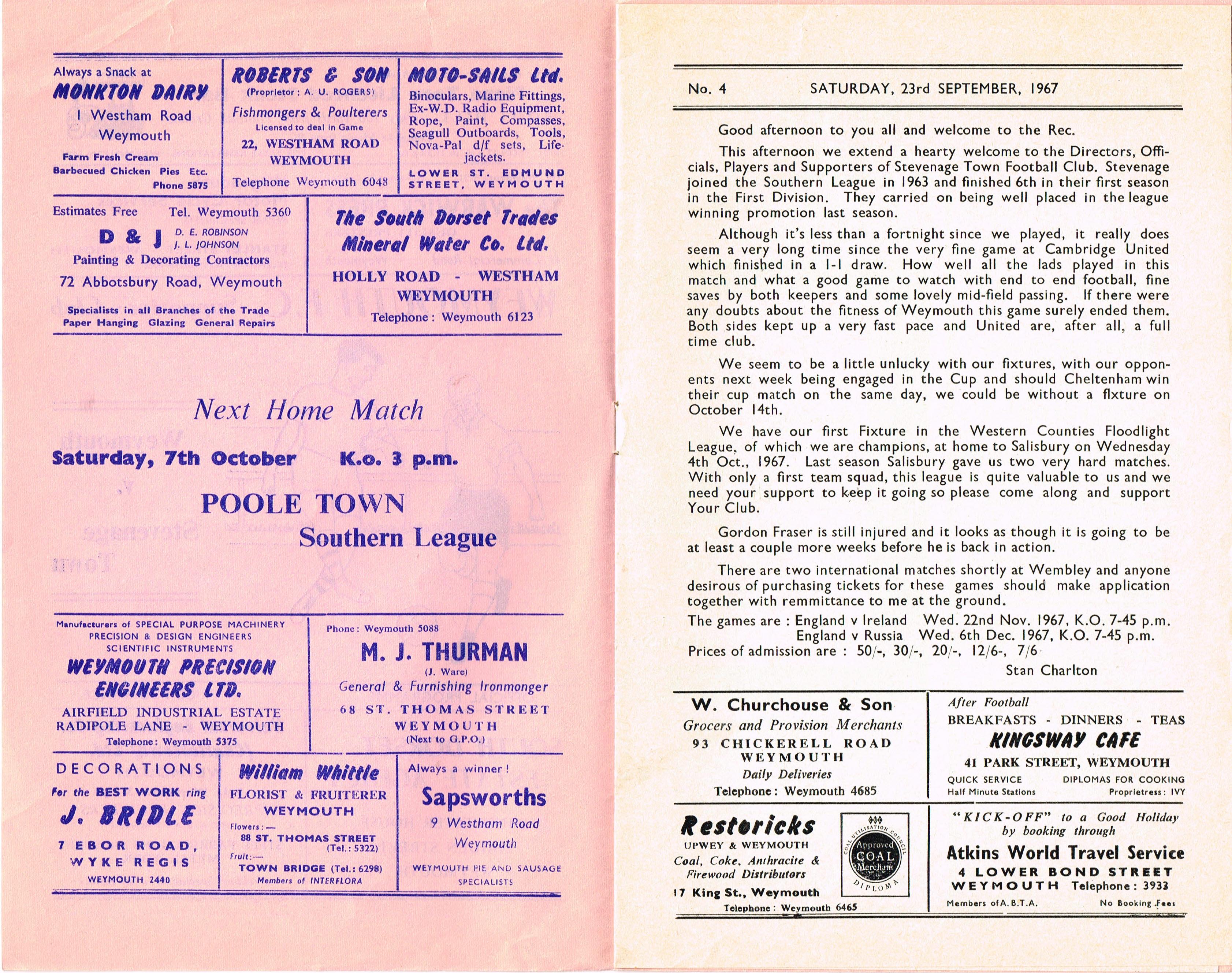 Weymouth v Stevenage, 23/09/1967