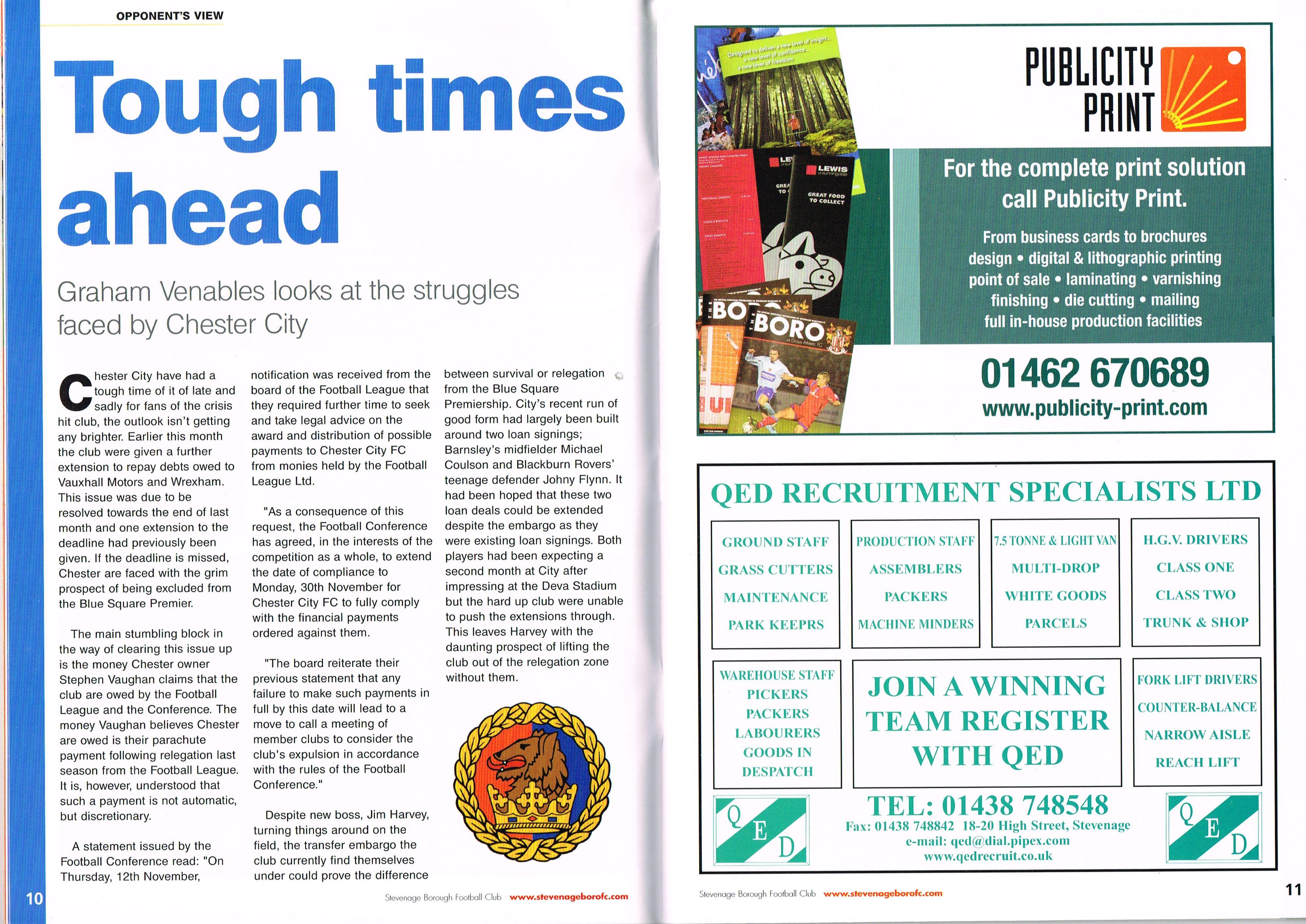 Stevenage v Chester, 24/11/2009 by Stevenage Football Archive - Issuu