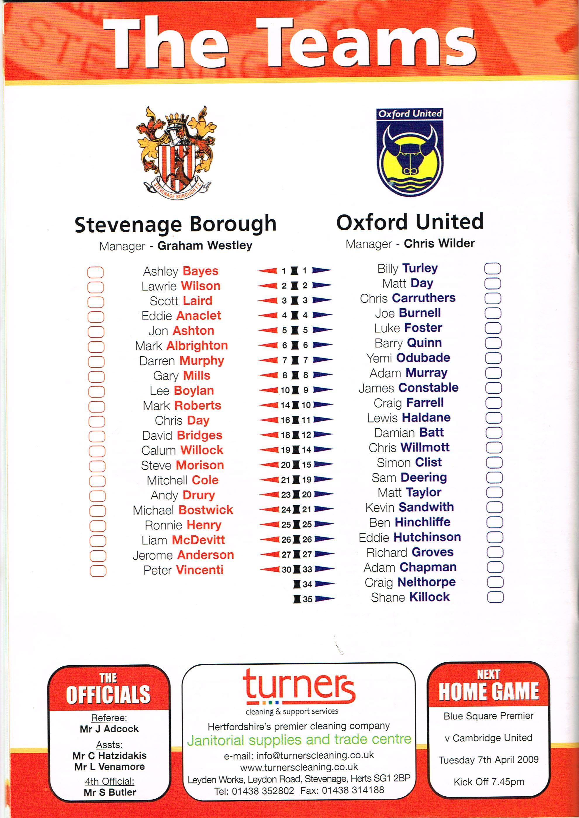 Stevenage v Oxford, 28/03/2009 by Stevenage Football Archive - Issuu
