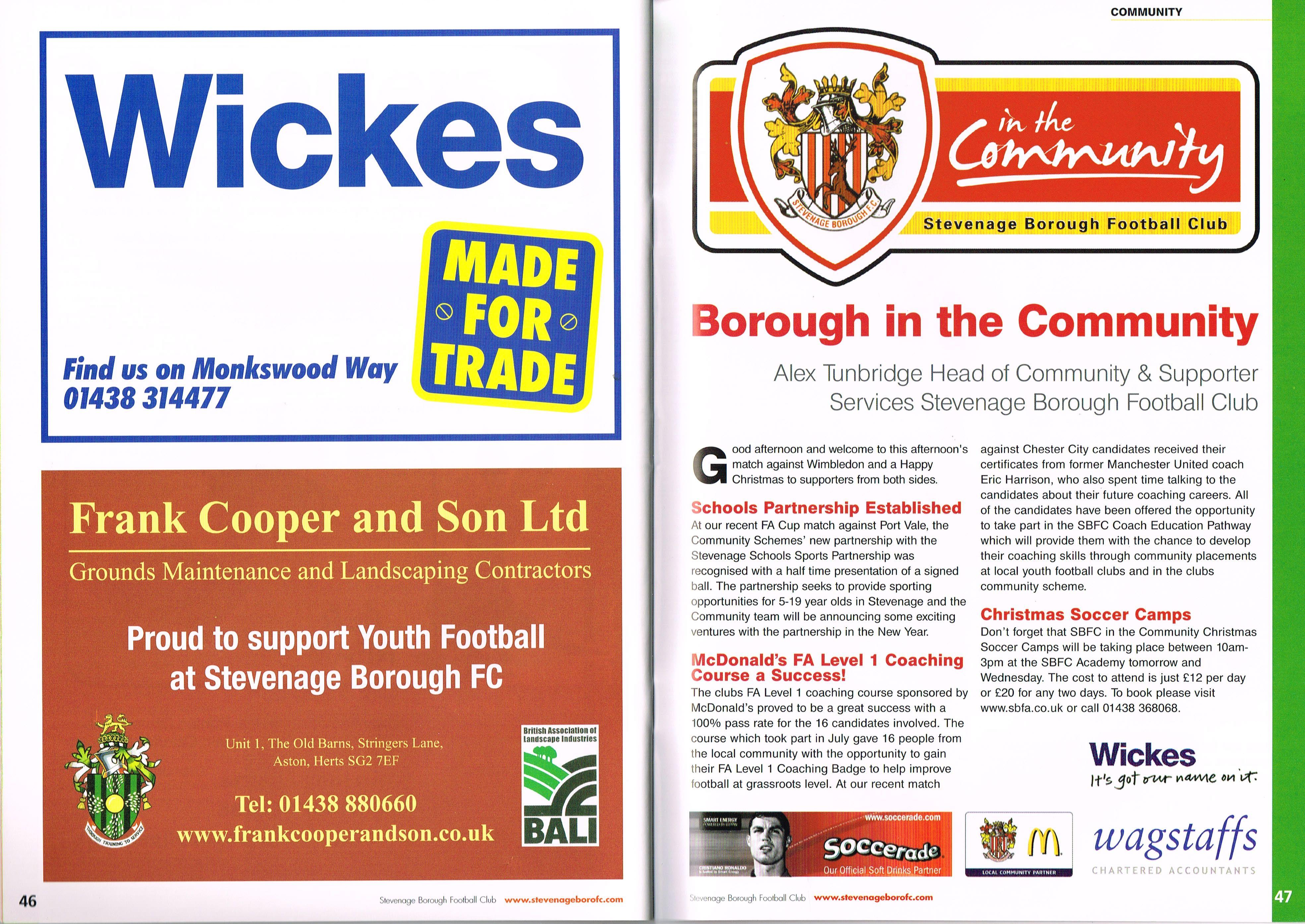 Stevenage v AFC Wimbledon, 28/12/2009 by Stevenage Football Archive - Issuu