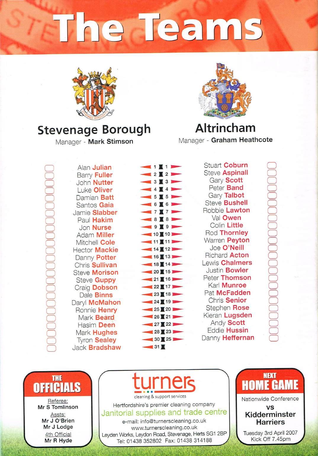 Stevenage v Altrincham, 24/03/2007 by Stevenage Football Archive - Issuu