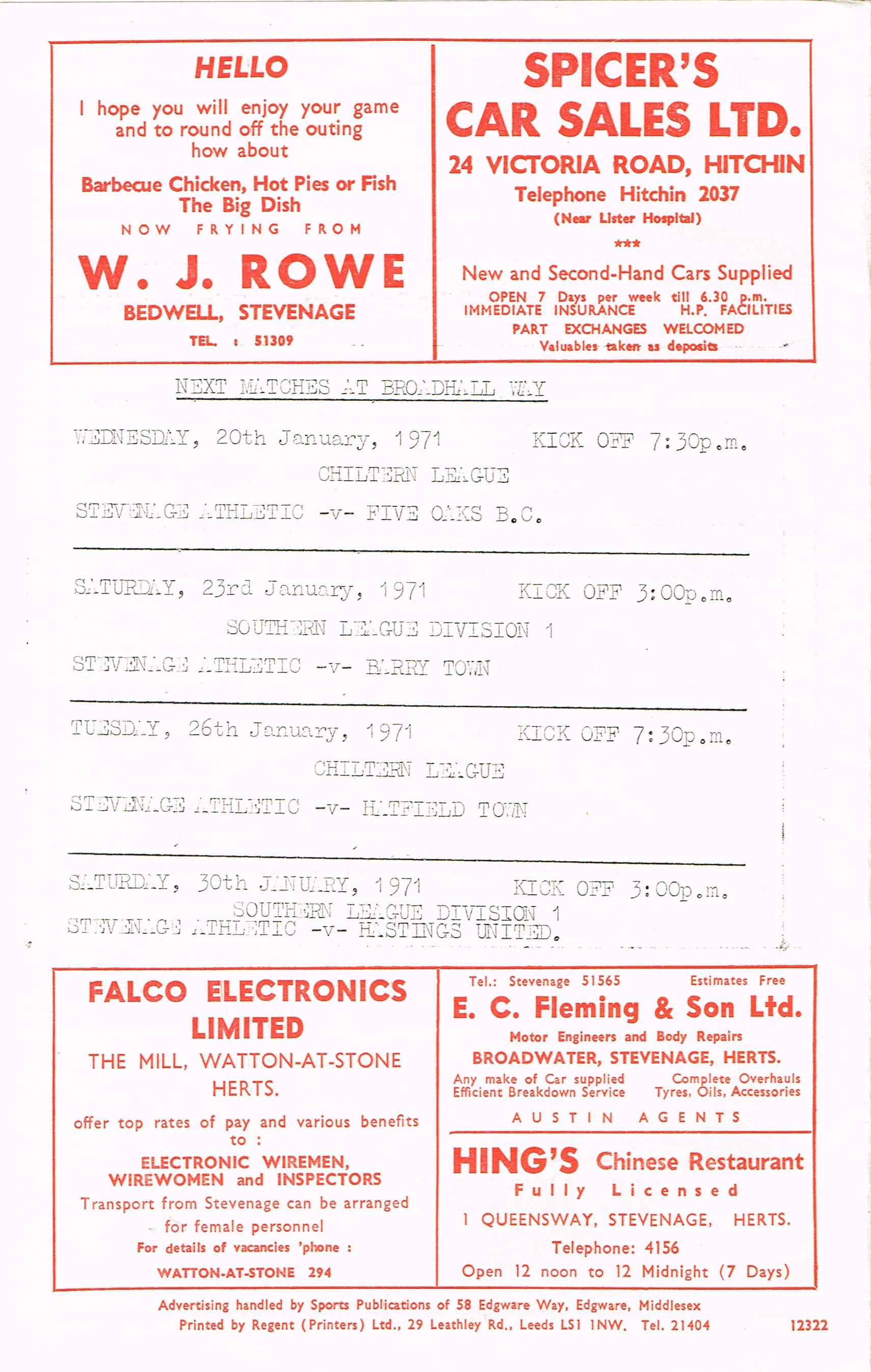 Stevenage v Bedford, 18/01/1971 by Stevenage Football Archive - Issuu