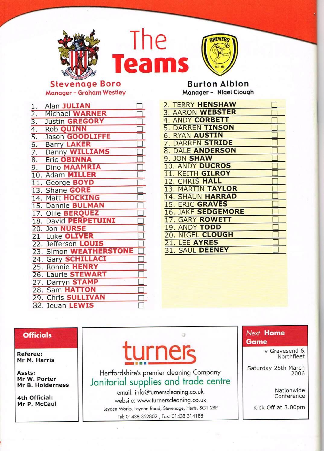 Stevenage v Burton, 11/03/2006