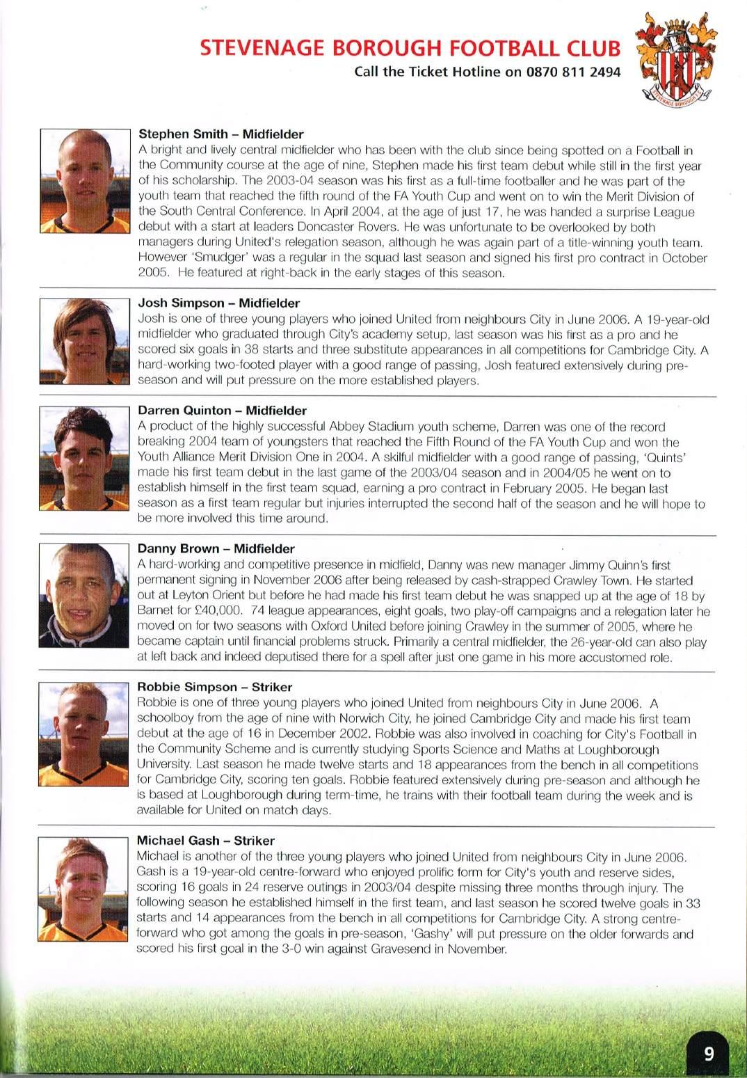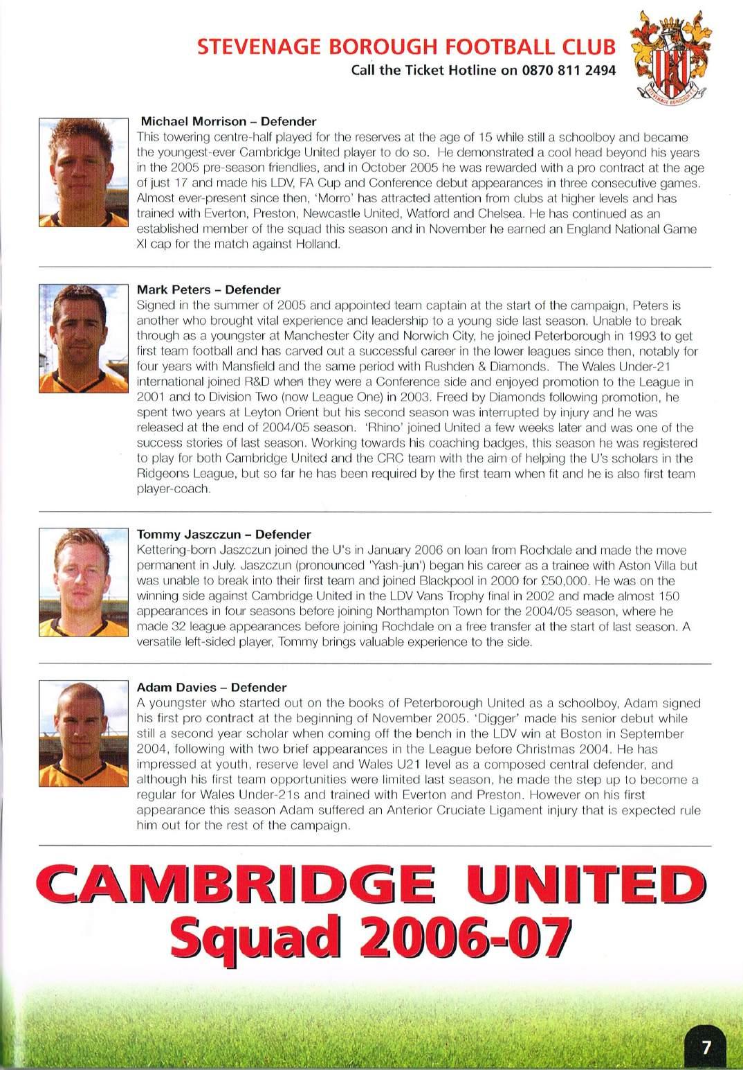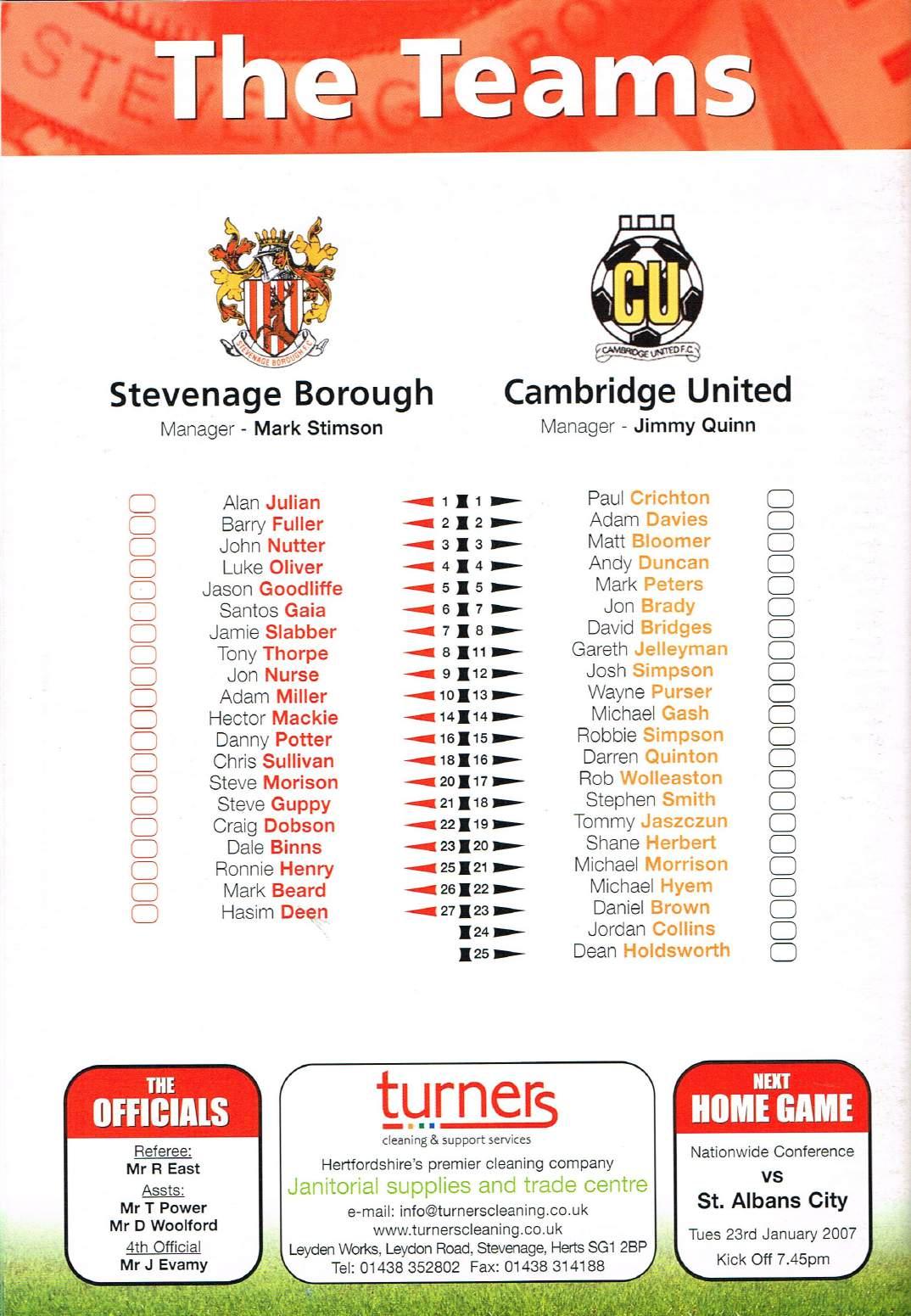Stevenage v Cambridge United, 20/01/2007 by Stevenage Football Archive - Issuu