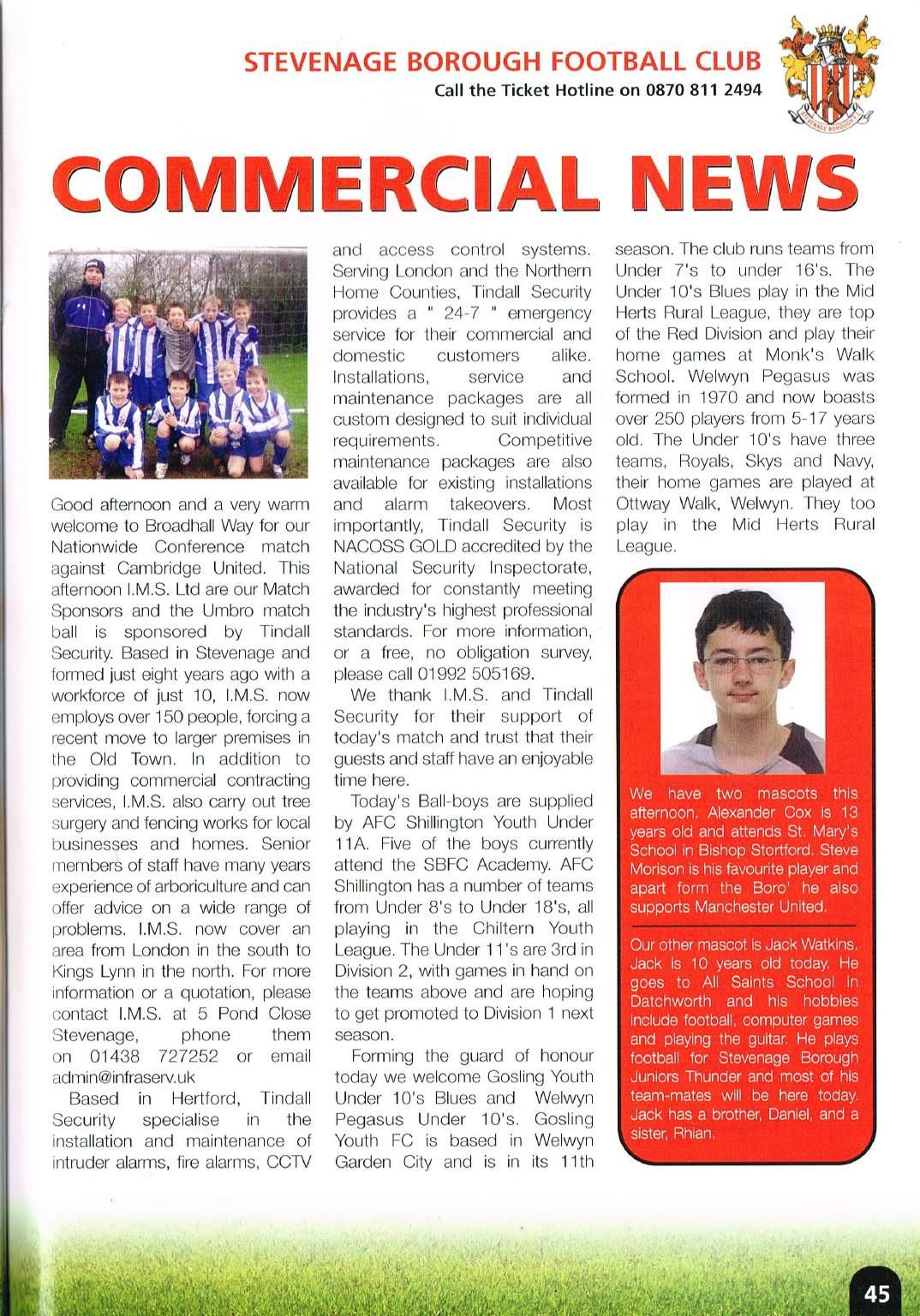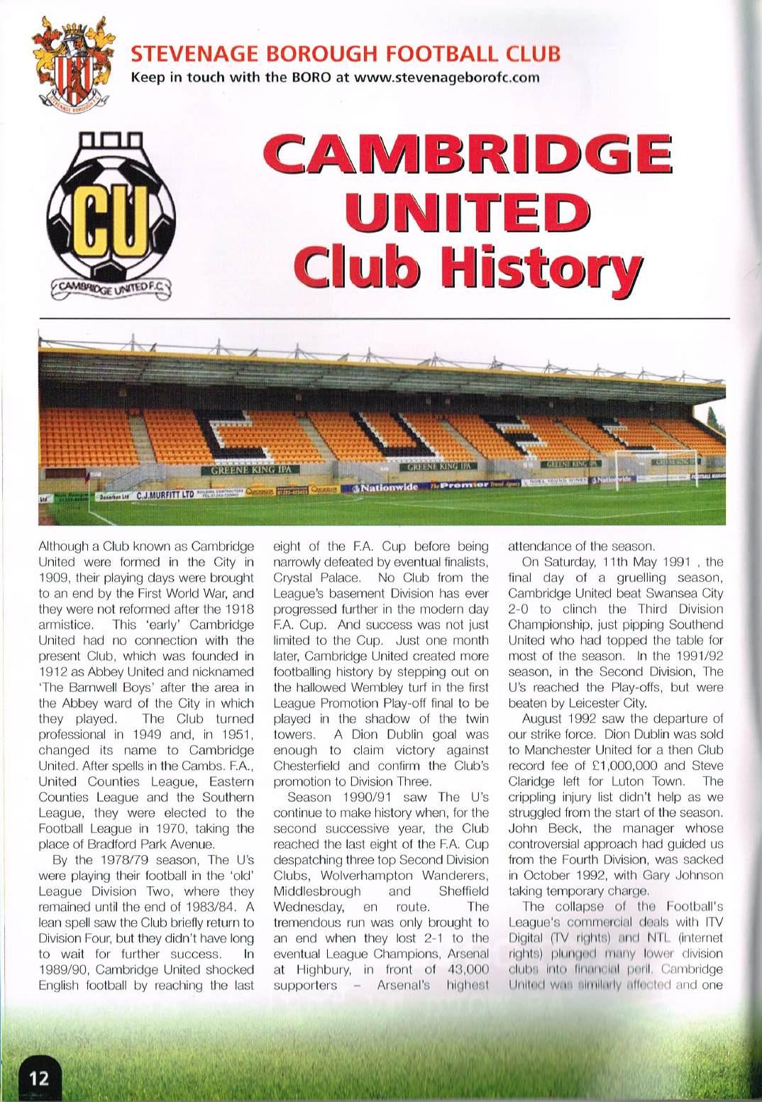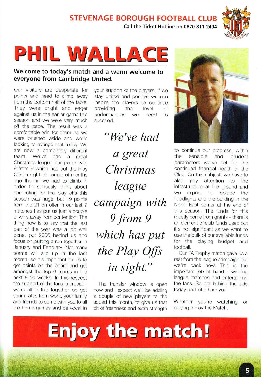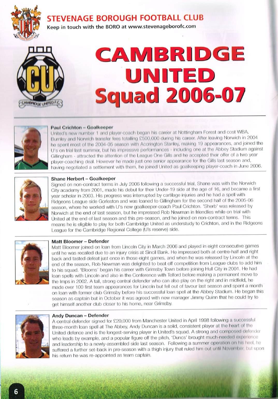 Stevenage v Cambridge United, 20/01/2007 by Stevenage Football Archive - Issuu