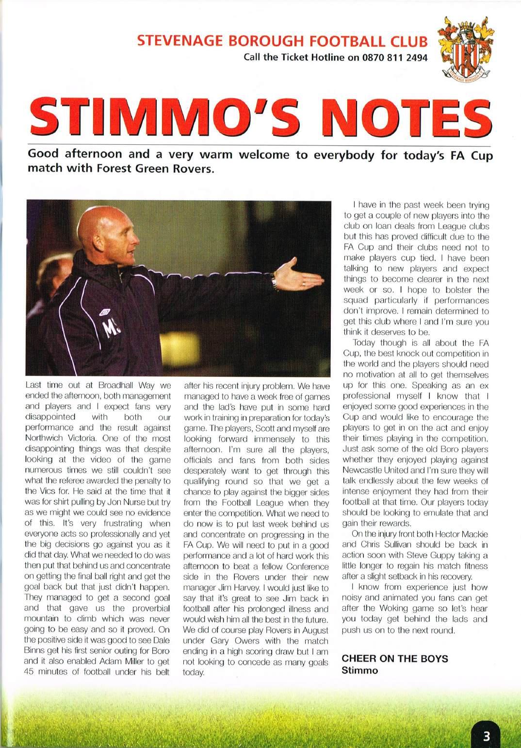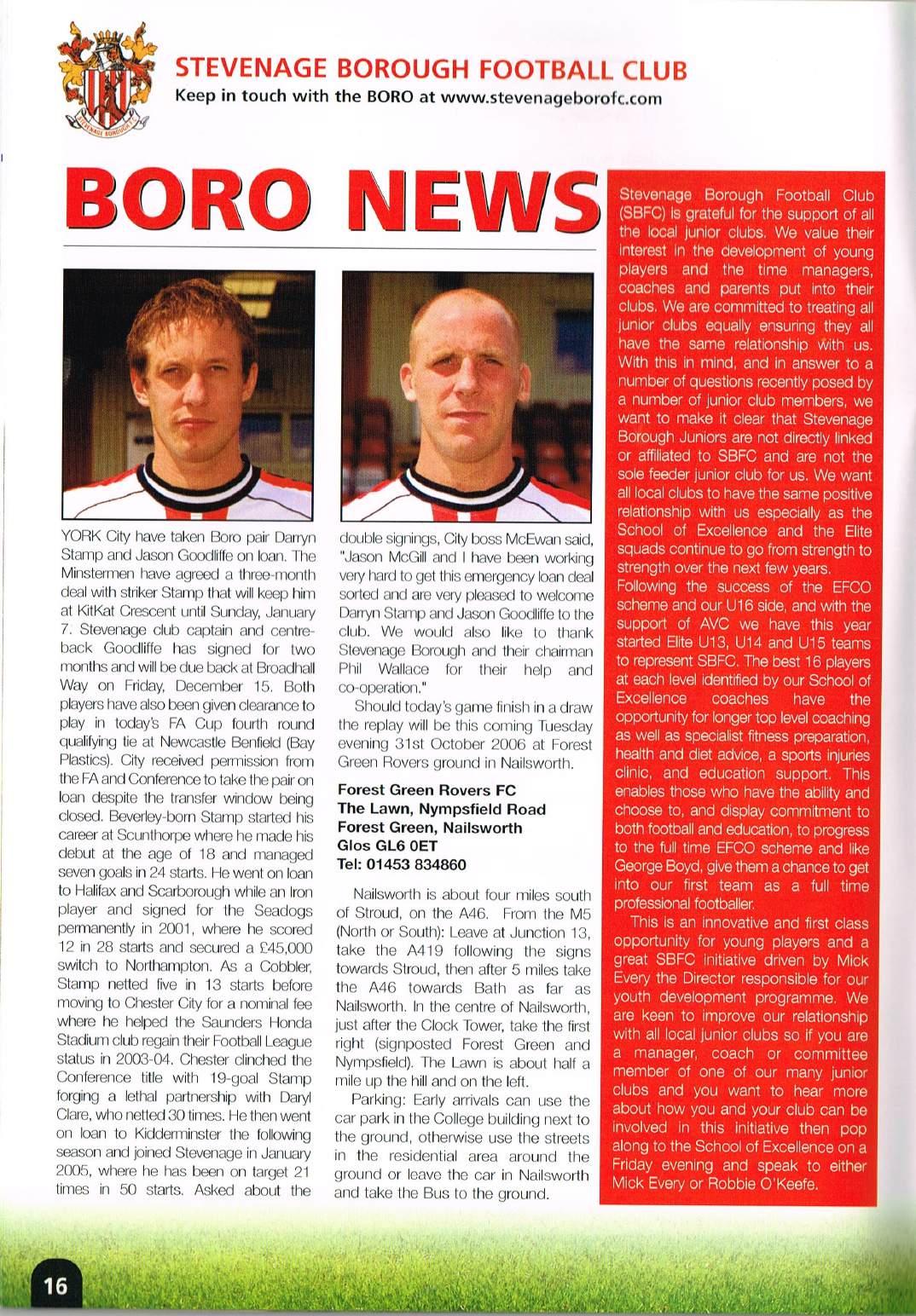 Stevenage v Forest Green, 28/10/2006 by Stevenage Football Archive - Issuu