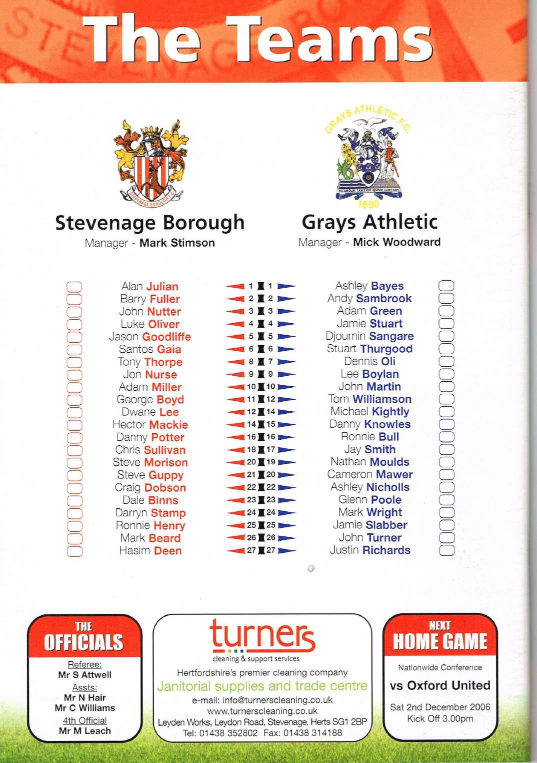 Stevenage v Grays, 18/11/2006