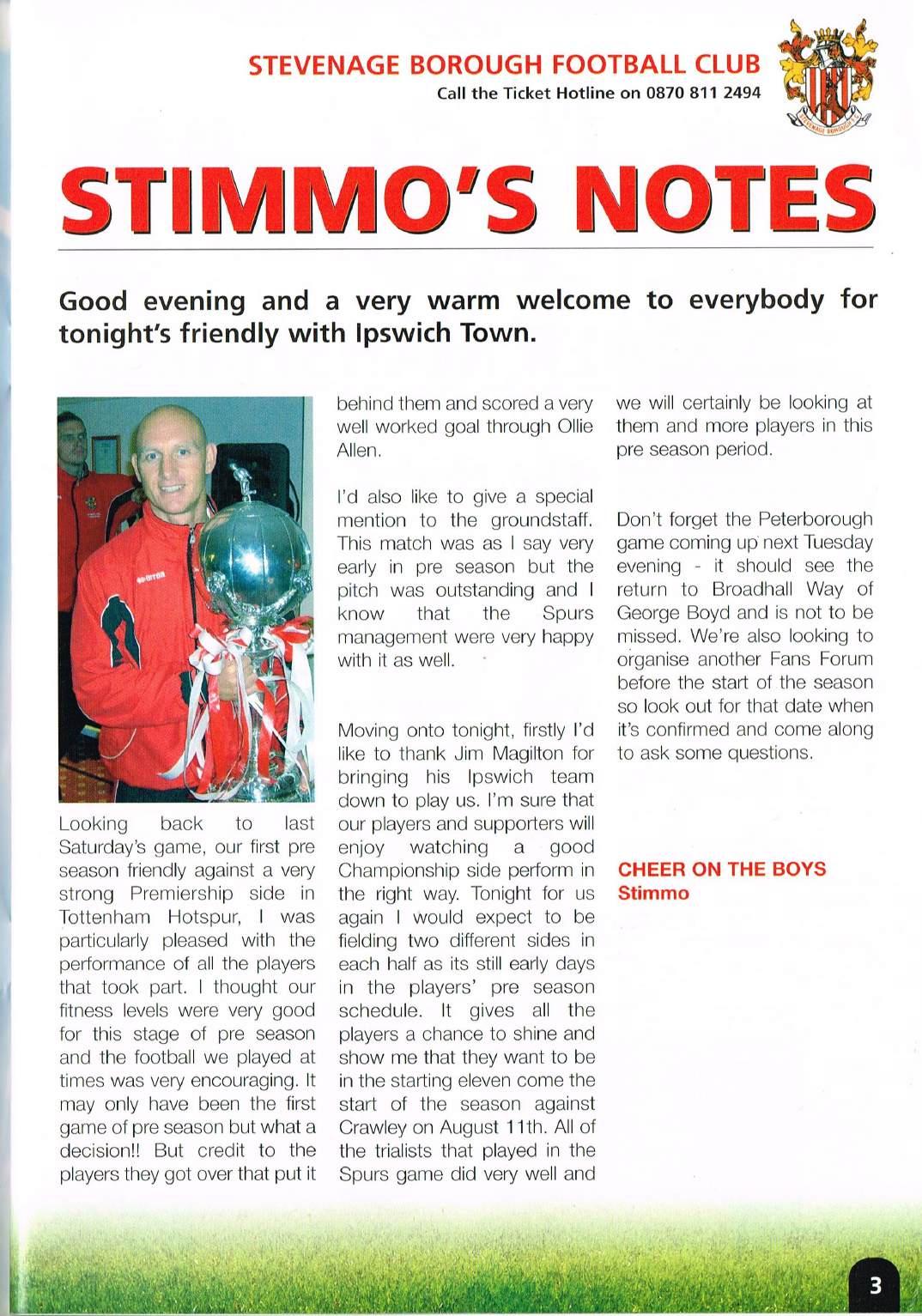 Stevenage v Ipswich, 17/07/2007 by Stevenage Football Archive - Issuu