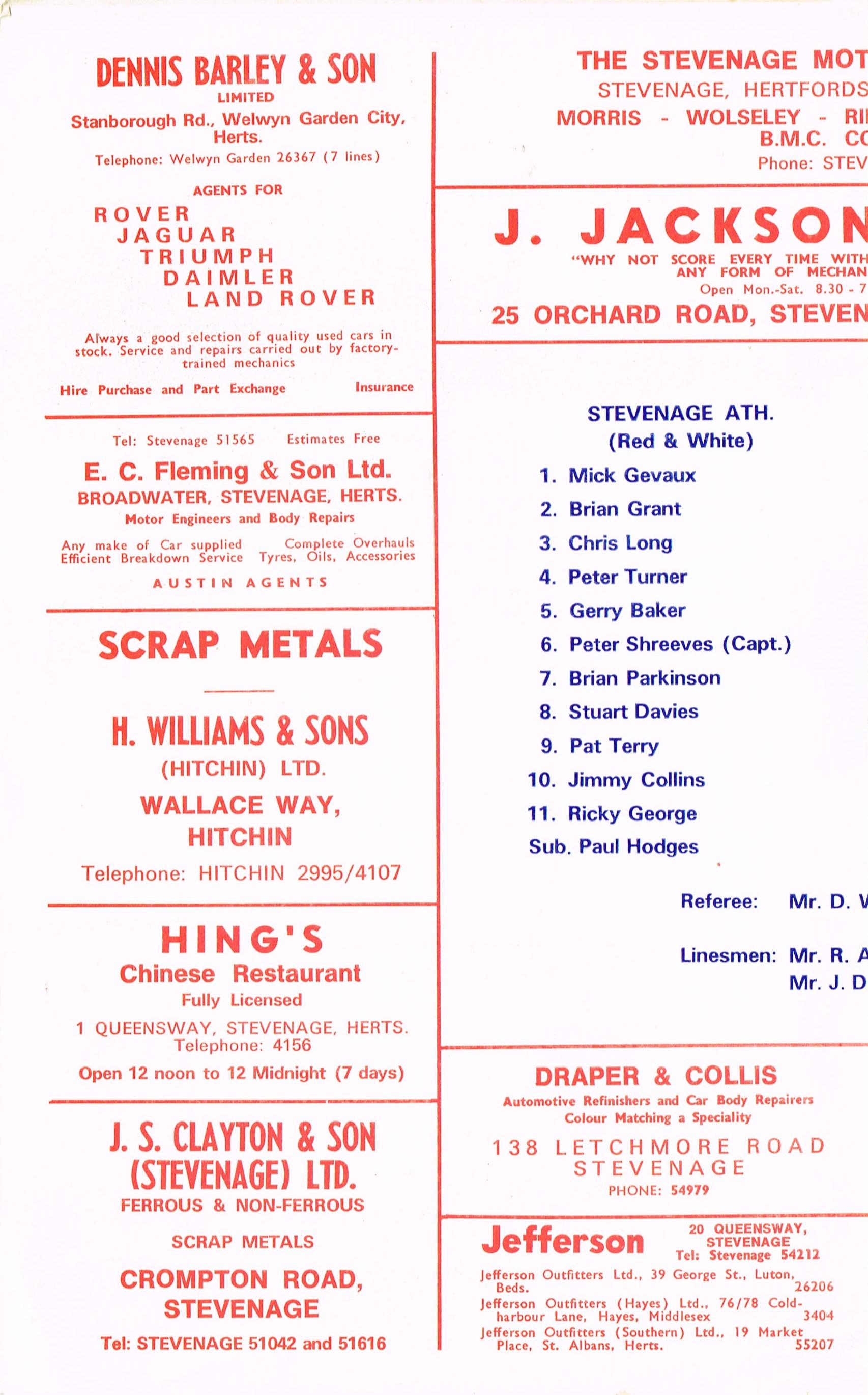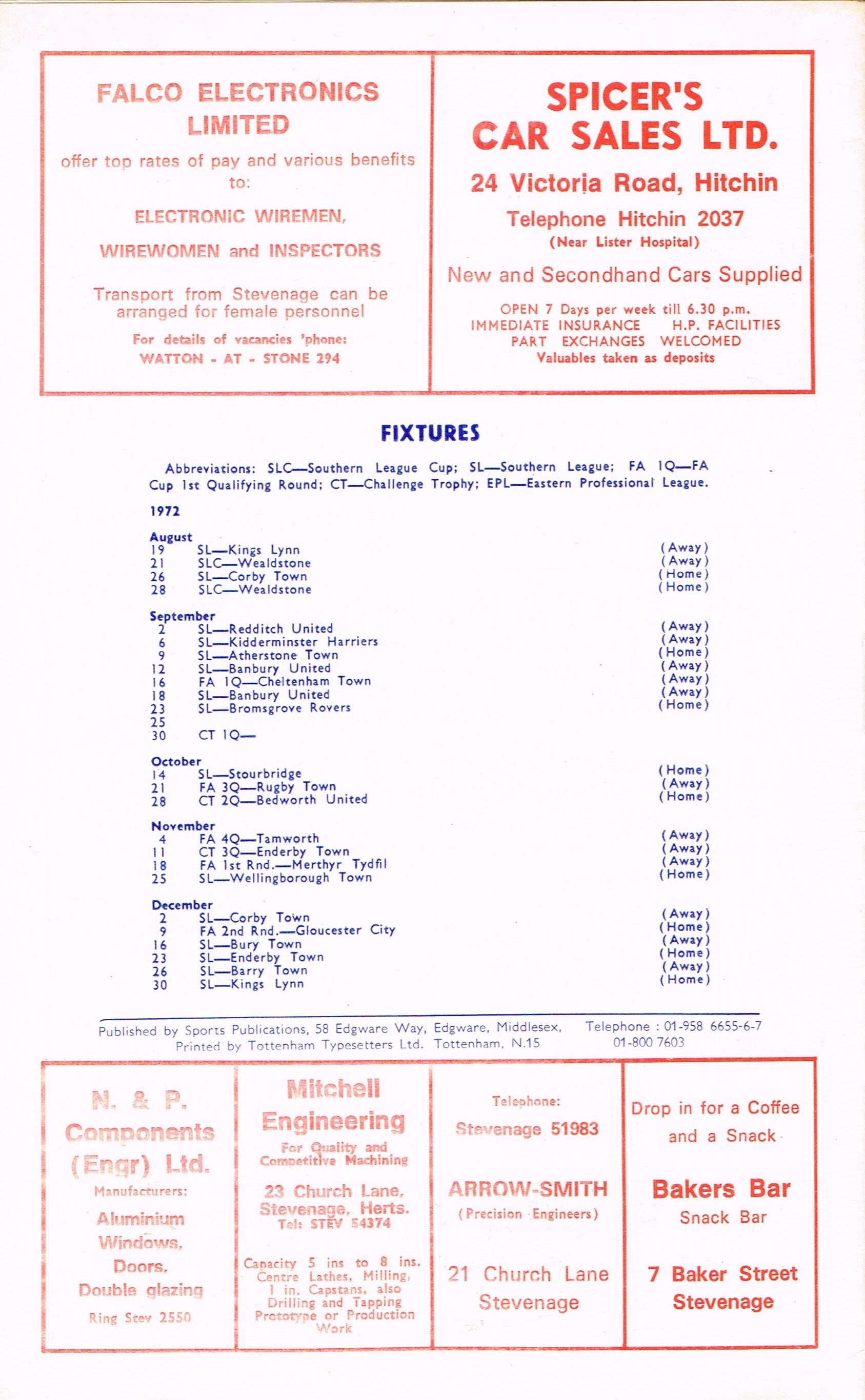 Stevenage v Kidderminster, 14/08/1972 by Stevenage Football Archive - Issuu