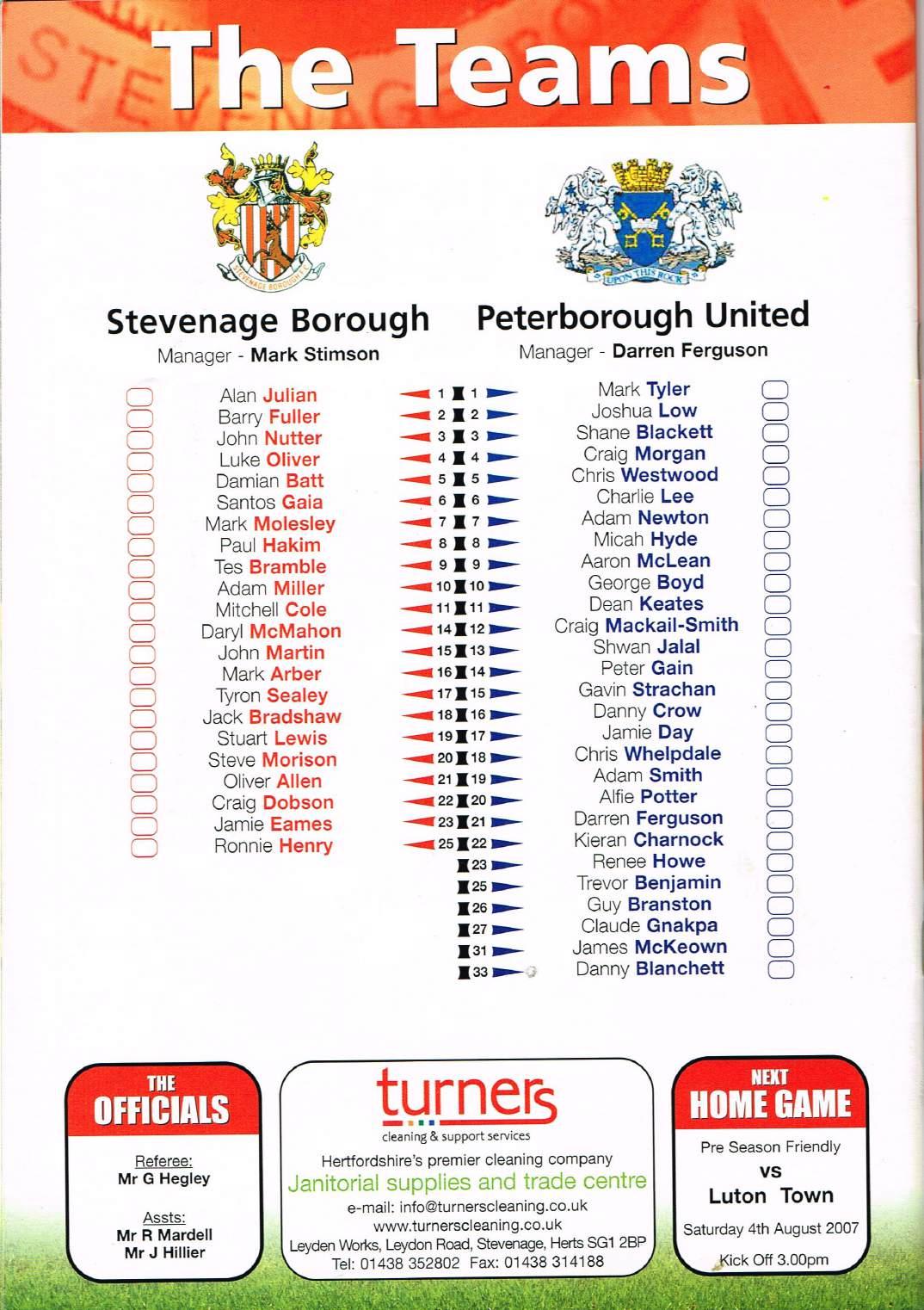Stevenage v Peterborough, 24/07/2007